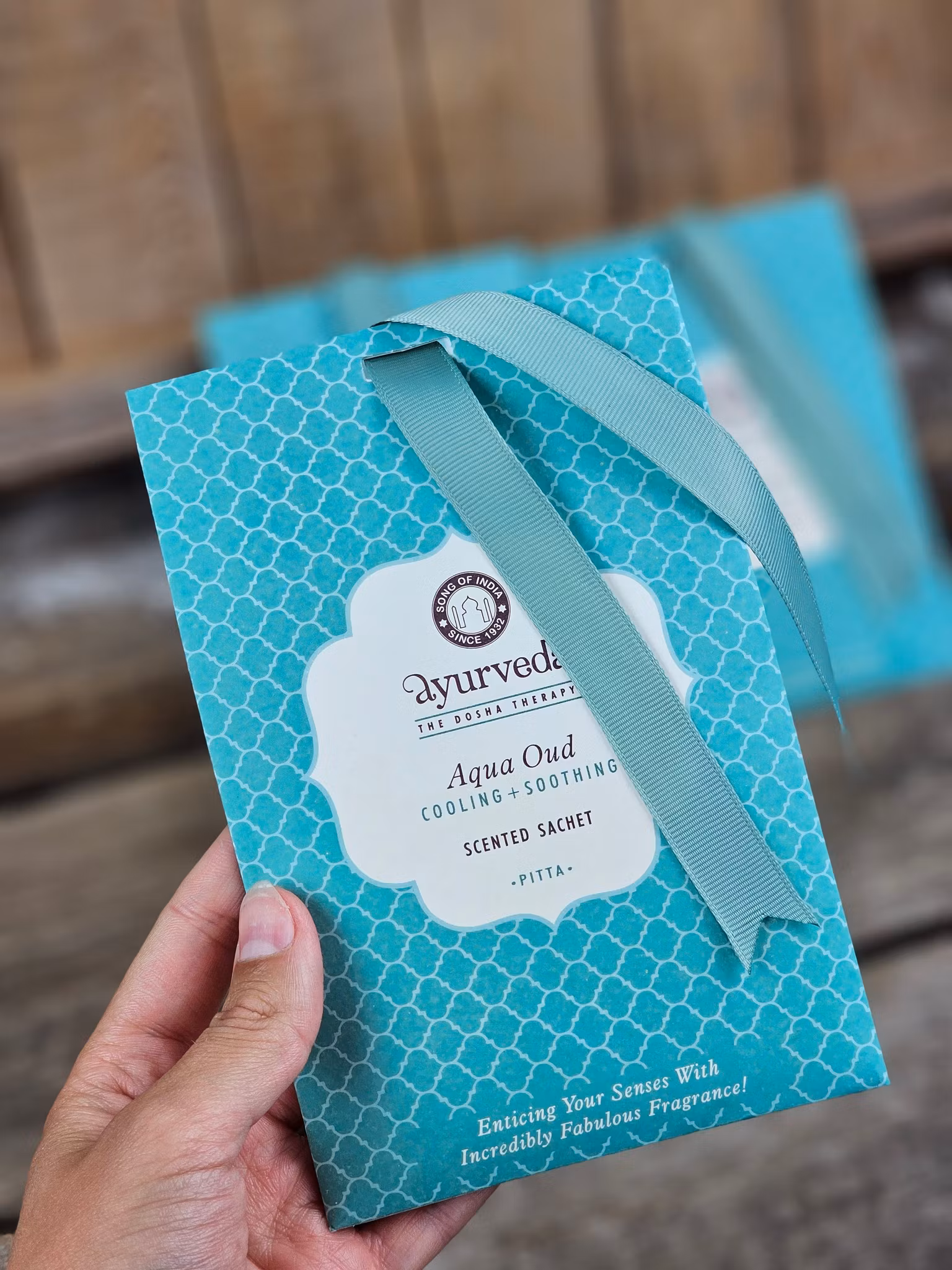 Doft: Pitta Aqua Oud. De sofistikerade och svalkande aquanoterna kombineras perfekt med den oemotståndliga varma och lugnande doften av Assam agarwoodolja. Lugnande och fräschar upp dina sinnen. Passar bra med pitta dosha.