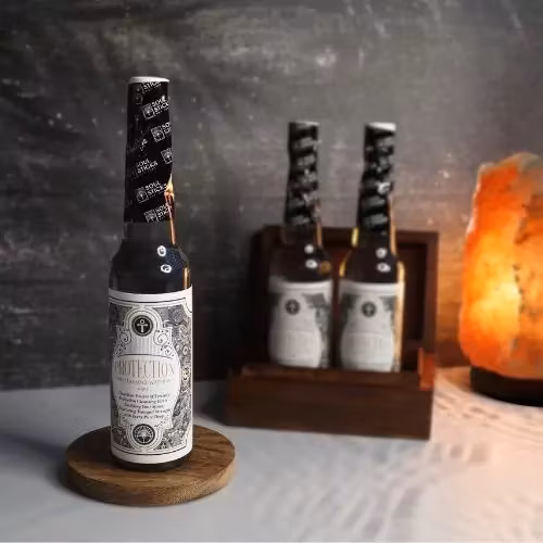 Protection är ett renande och beskyddande ritualvatten som hjälper till att stärka det egna energifältet och skapa känslomässig stabilitet. Används för att stöta bort tung energi, släppa påverkan utifrån och skapa en trygg, centrerad atmosfär i både kropp och rum. Endast för utvärtes bruk. Säljs per 1 st flaska (221 ml).