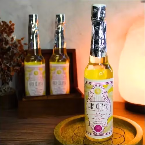 Aura Cleanse är ett renande och uppfriskande ritualvatten som hjälper till att frigöra tung energi, återställa balans och förnya ditt energifält. Används för att rensa aura, hem och föremål från negativitet och skapa klar, lätt energi. Endast för utvärtes bruk. Säljs per 1 st flaska (221 ml).
