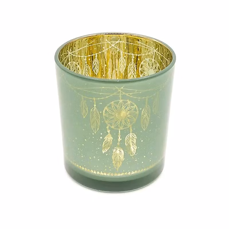 Ljuslykta i glas – Grön med Drömfångare (Liten)