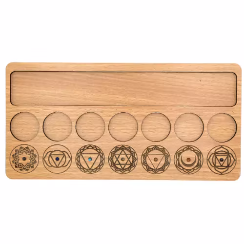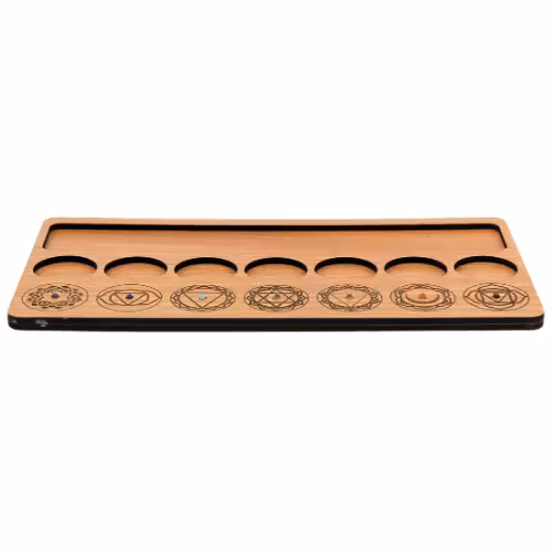 Vacker bräda som passar perfekt när du vill t.ex. arbeta med chakra-balans, rena, läka, och öppna upp olika chakran. Brädan är dekorerad med symboler för de sju chakran, samt med plats för t.ex. kristaller tillhörande de sju chakran. En fantastisk inredningsdetalj samtidigt som det blir en samlingspunkt till dina kristaller & spirituella ting inom chakra-arbete. Säljes styckvis, kristaller ingår ej. Du köper en bräda enligt text & bild ovan. Färger kan skilja sig beroende på hur ljuset faller ner på produkten samt även mellan olika bildskärmar m.m.