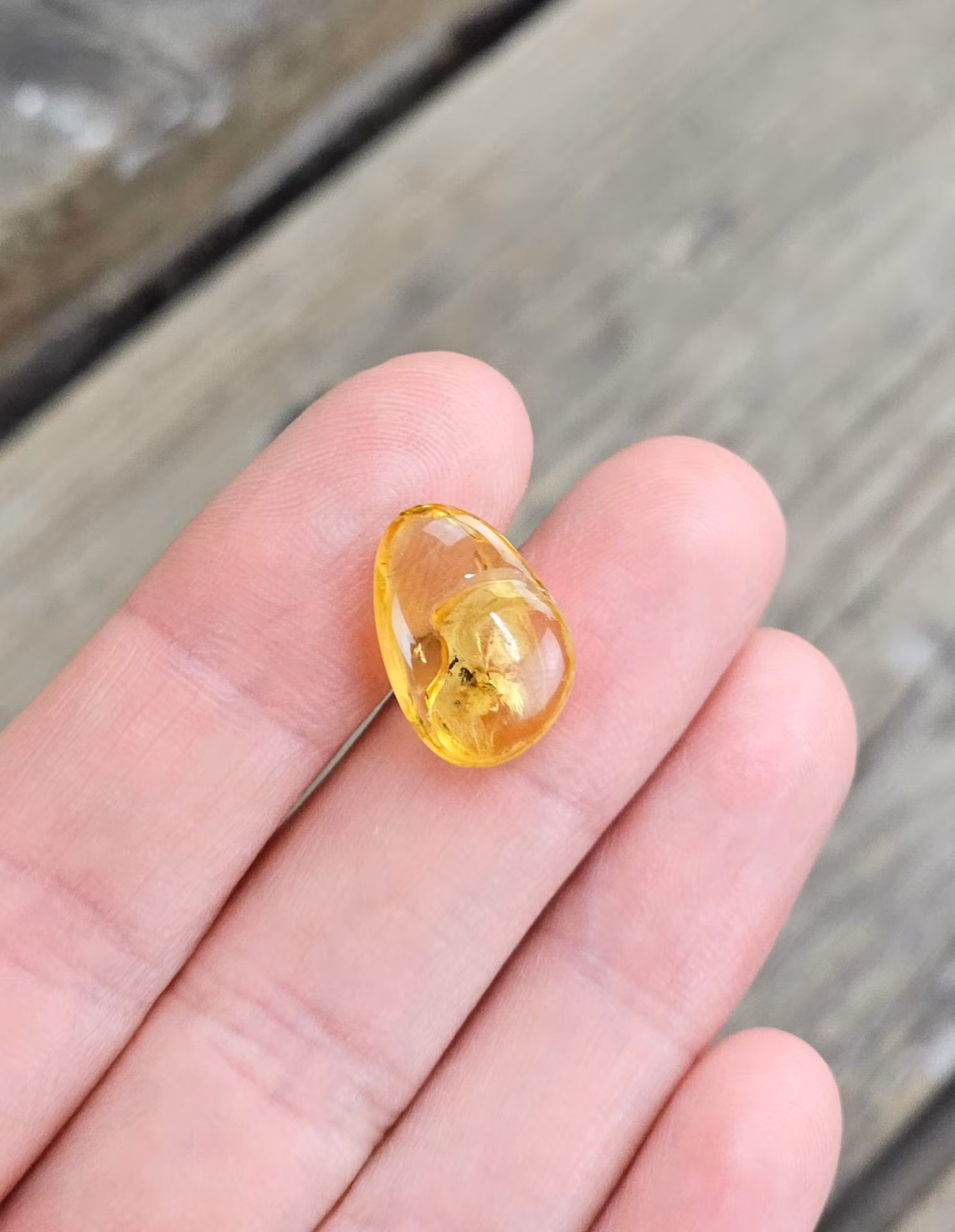 Unikt samlarobjekt av autentisk Bärnsten med inneslutning av insekt i underbar kvalité! Exemplaret på bilden är den du köper, inklusive den lilla lådan med förstoringsglas-effekt. Bärnsten är fossilerad trädkåda. En insekt fastnar i den klibbiga kådan från trädet, kådan rinner då över insekten - och den är fast. Under miljontals år härdar kådan till Bärnsten. En mycket fascinerande bit att detektera med sitt spännande innehåll, som en liten tidskapsel. Tänk på att de kommer från naturen & naturliga sprickor & ojämnhet kan förekomma. Färger kan skilja sig beroende på hur ljuset faller ner på produkten samt även mellan olika bildskärmar m.m.