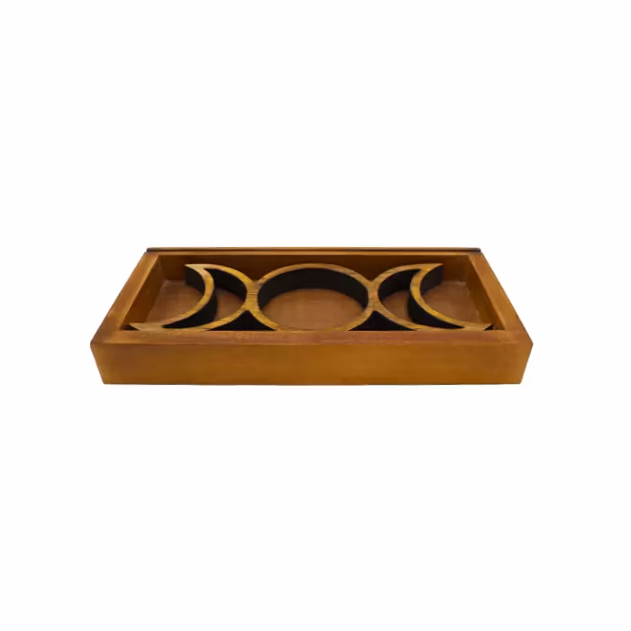 Kristallbricka & tarotkorthållare, Månfaser i trä