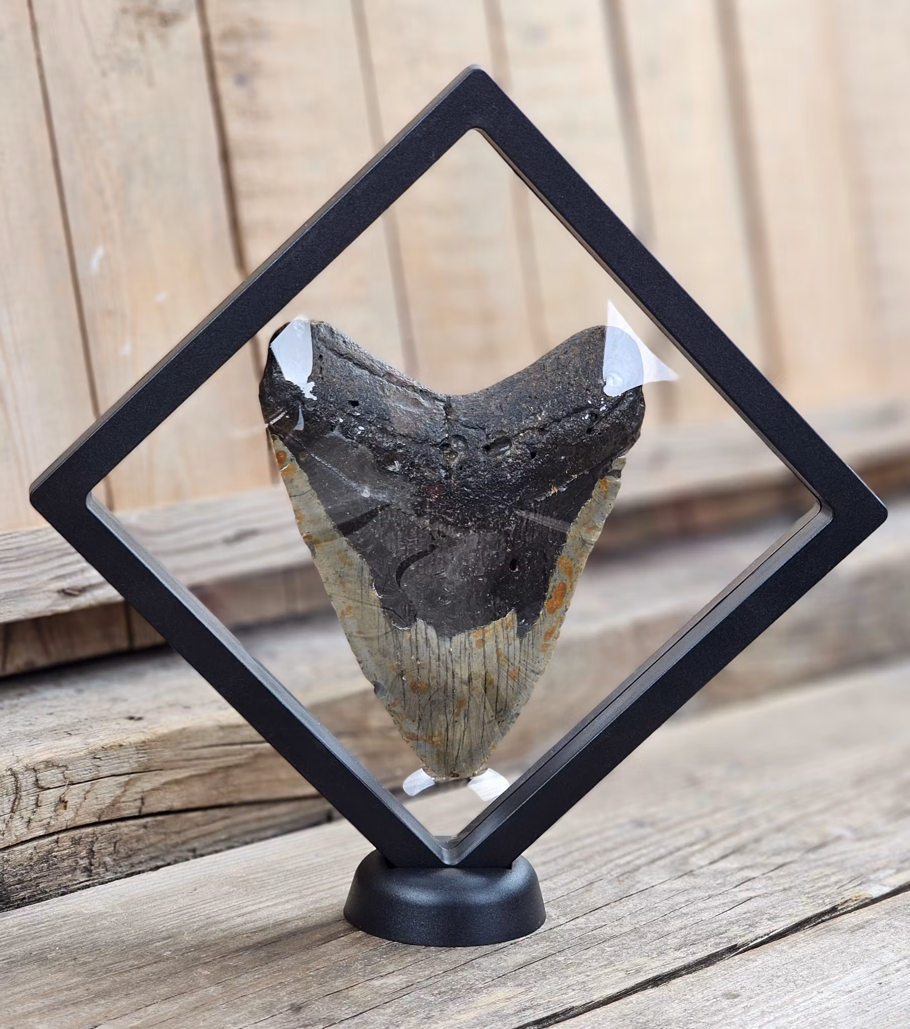 Fantastisk fin autentisk stor tand av Megalodon, ett eftertraktat samlarobjekt. Tanden på bilden är den du köper. Observera att display ingår ej. Megalodon-tänder har en fascinerande historia då Megalodon tros vara den största rovfisken att existera sedan dinosaurierna. Fossiler av Megalodon indikerar att denna haj var uppemot 15 meter lång, den största vägde över 16 ton. Jämför det med den största idag levande rovfisken Vithajen som är omkring 6 meter lång och ca. 1,1 ton i maxvikt. Megalodons tänder är därmed mycket, mycket större än hos nutida hajar, vilket gör dom extra imponerande. De är värdefulla dels på grund av sitt unika utseende men även på grund av dess ålder och sällsynthet. Megalodon levde för omkring 5 miljoner år sedan under Miocen, en förhistorisk gigantisk haj. Det här är ett riktigt unikt och maffigt samlarobjekt - en bit av historia ur en forntida värld. Tänk på att kristaller och fossiler kommer från naturen & naturliga sprickor & ojämnhet kan förekomma. Färger kan skilja sig beroende på hur ljuset faller ner på produkten samt även mellan olika bildskärmar m.m.