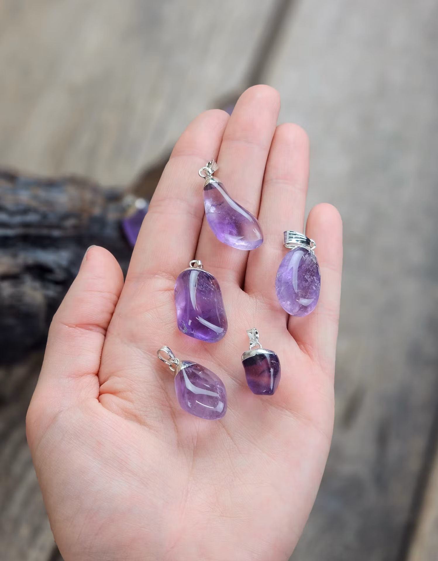 Ametist klar trumlad, silverpläterat hänge (modell 2) -10% utgående modell
