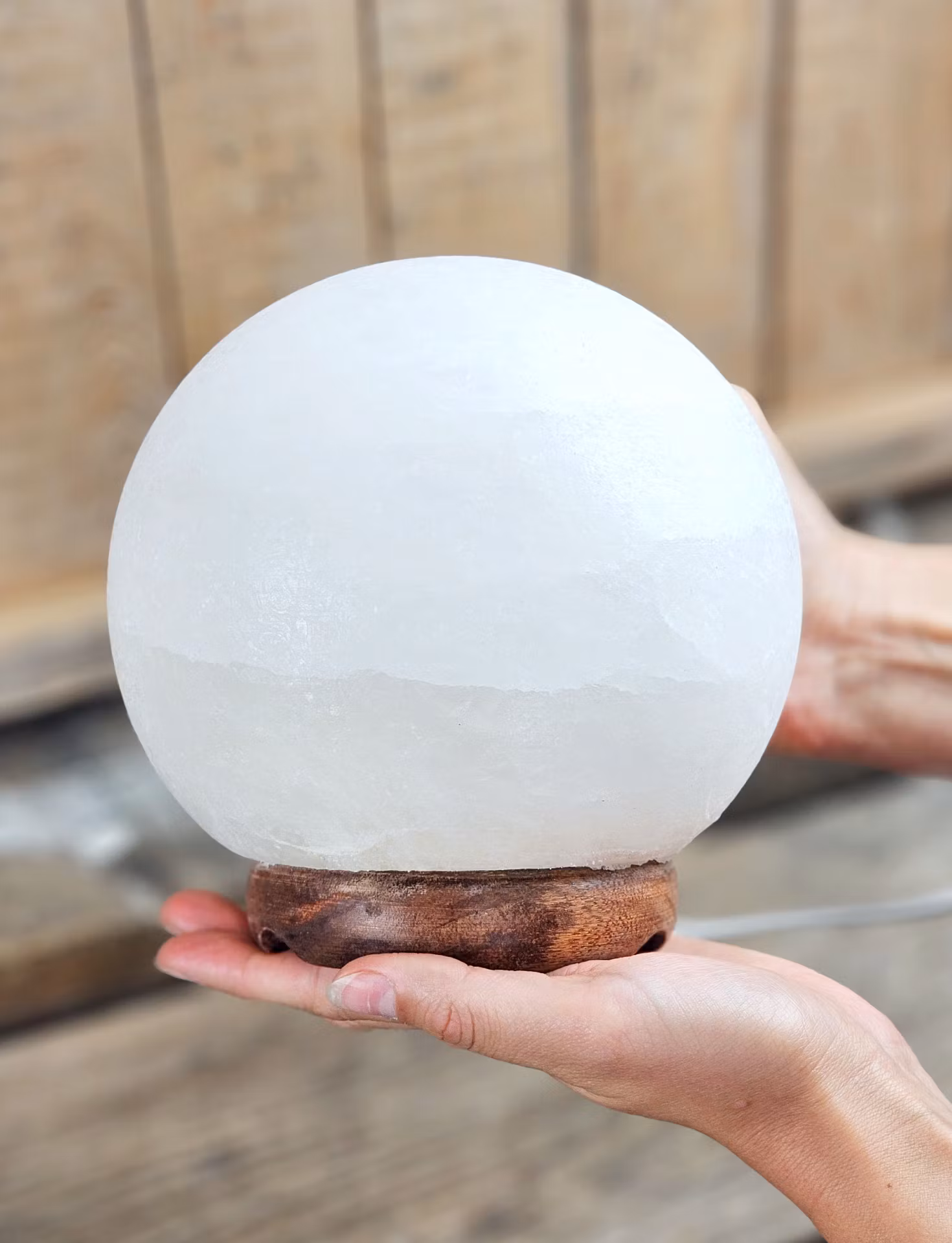 Observera att det finns partier på lampan nedtill med gula inslag (ej helt kritvita). Därav -40% rabatt fyndhörnan. Mycket vacker stor rund lampa i Vit Himalaya Saltkristall. Säljes styckvis. Effekten när man har denna lampa tänd är helt oslagbar. En unik detalj i hemmet som skapar en underbar stämning. De skiftar i utseende. Du köper slumpvis liknande lampa enligt text & bild ovan. Tänk på att kristaller kommer från naturen & naturliga sprickor & ojämnhet kan förekomma. Färger kan skilja sig beroende på hur ljuset faller ner på kristallen samt även mellan olika bildskärmar m.m.