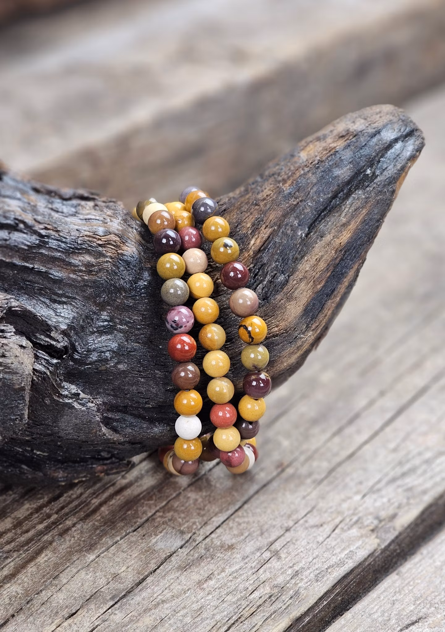 Mookaitjaspis, armband 6mm runda pärlor -30% fynd dålig tråd