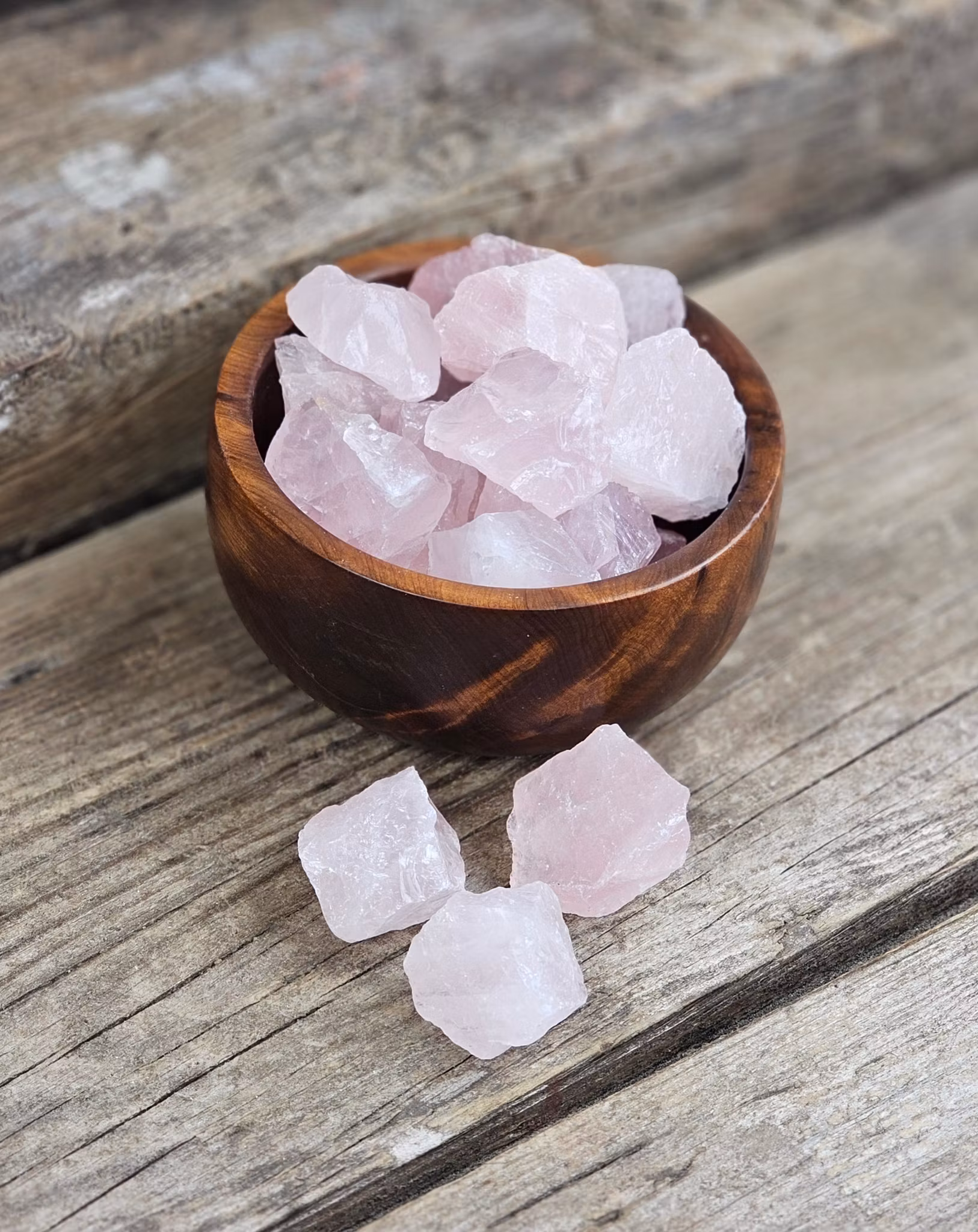 Jättefina små rå Rosenkvarts. Säljes styckvis. De skiftar i utseende och form. Du köper en kristall enligt text & bild ovan. Tänk på att kristaller kommer från naturen, små skillnader kan därför förekomma i produktens utseende på grund av dess naturmaterial. Färger kan skilja sig beroende på hur ljuset faller ner på kristallen samt även mellan olika bildskärmar m.m.