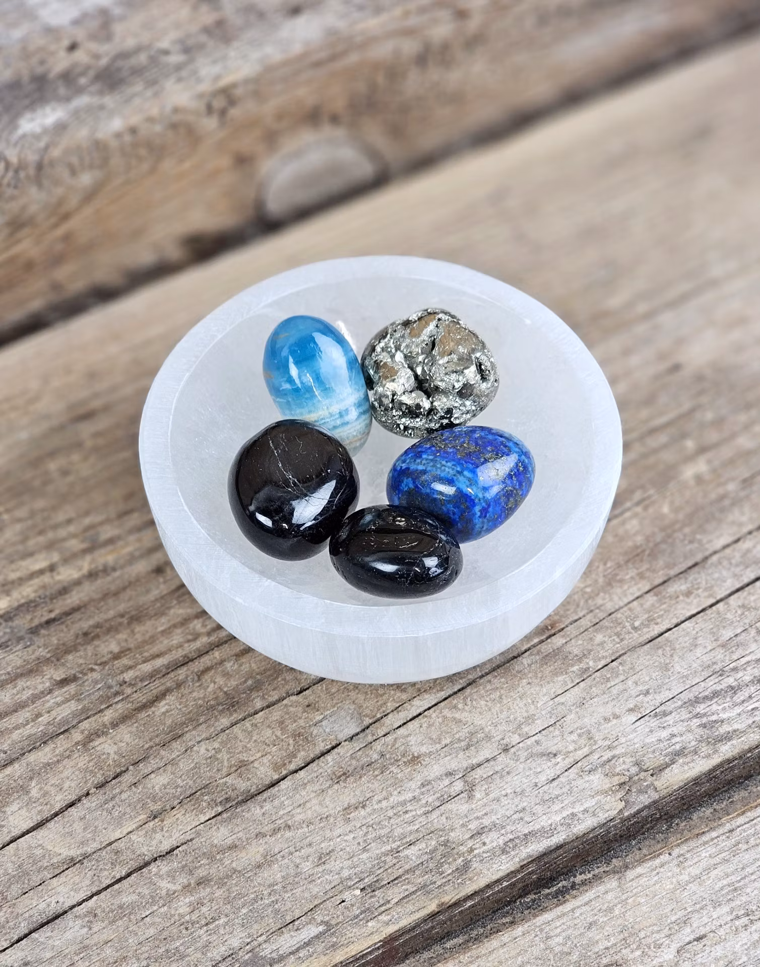 Mycket vacker polerad skål i Vit Selenit. Fin förvaring till t.ex. dina trumlade stenar eller smycken. Observera att smycken/kristaller i skålen inte ingår, dessa köpes separat i vår butik. Skålarna säljes styckvis. De skiftar i utseende. Du köper en slumpvis liknande skål enligt text & bild ovan. Tänk på att kristaller kommer från naturen & naturliga sprickor & ojämnheter kan förekomma. Färger kan skilja sig beroende på hur ljuset faller ner på kristallen samt även mellan olika bildskärmar m.m.
