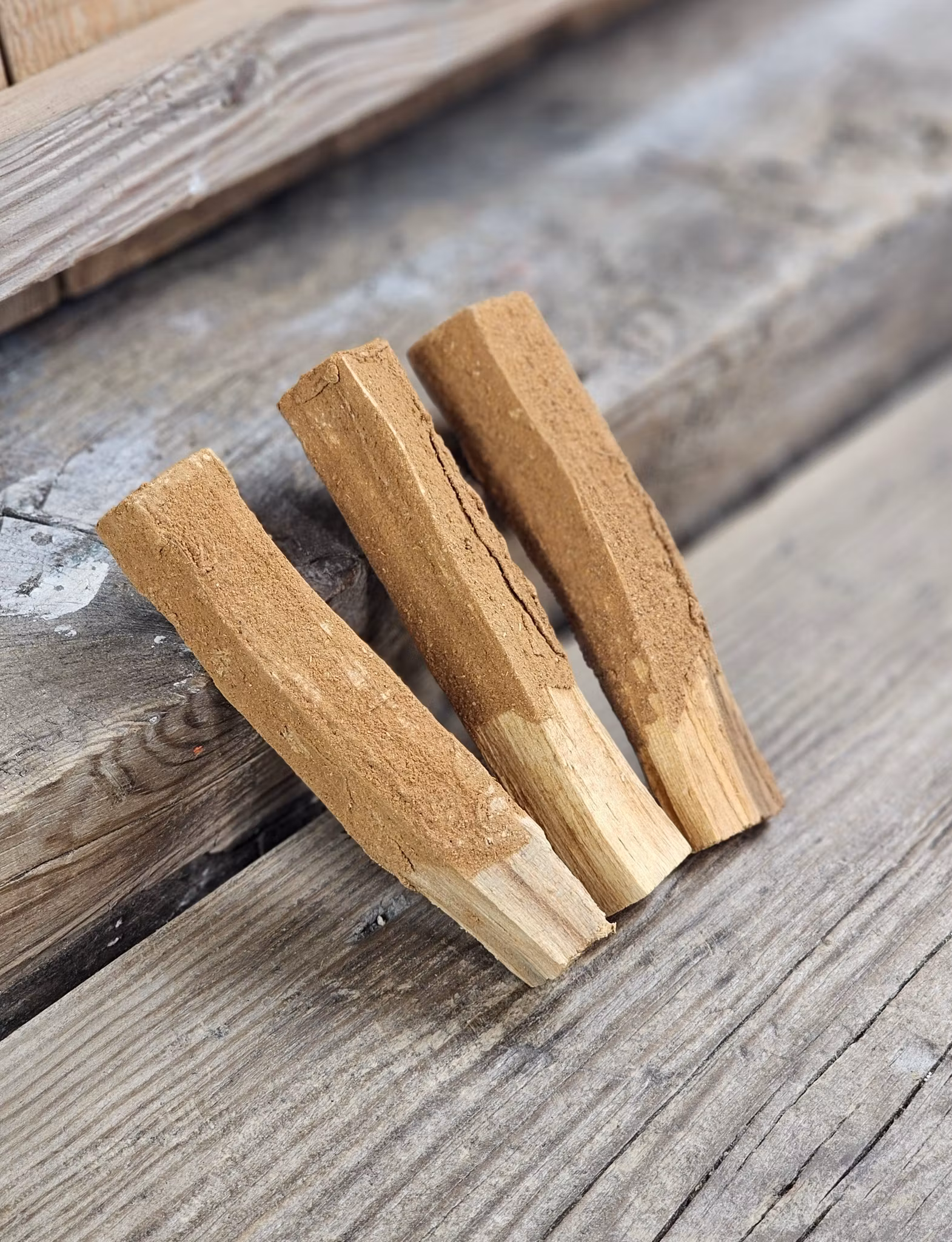 Rökelse av 100% naturlig äkta Palo Santo, i en kombination med kanel. Värmande och lugnande Kanel är känt för sina antibakteriella och antivirala egenskaper, vilket främjar en hälsosammare atmosfär. I kombination med Palo Santo ges det en komplett och balanserad renande upplevelse. Palo Santo kallas även för Heligt trä (Holy Wood/Sticks). Palo Santo har en söt och härlig frisk, ganska intensiv doft. Palo Santo beskrivs som citrus, trä och tall. Används för att rena t.ex. dina kristaller eller ett rum och sätta intentioner.
