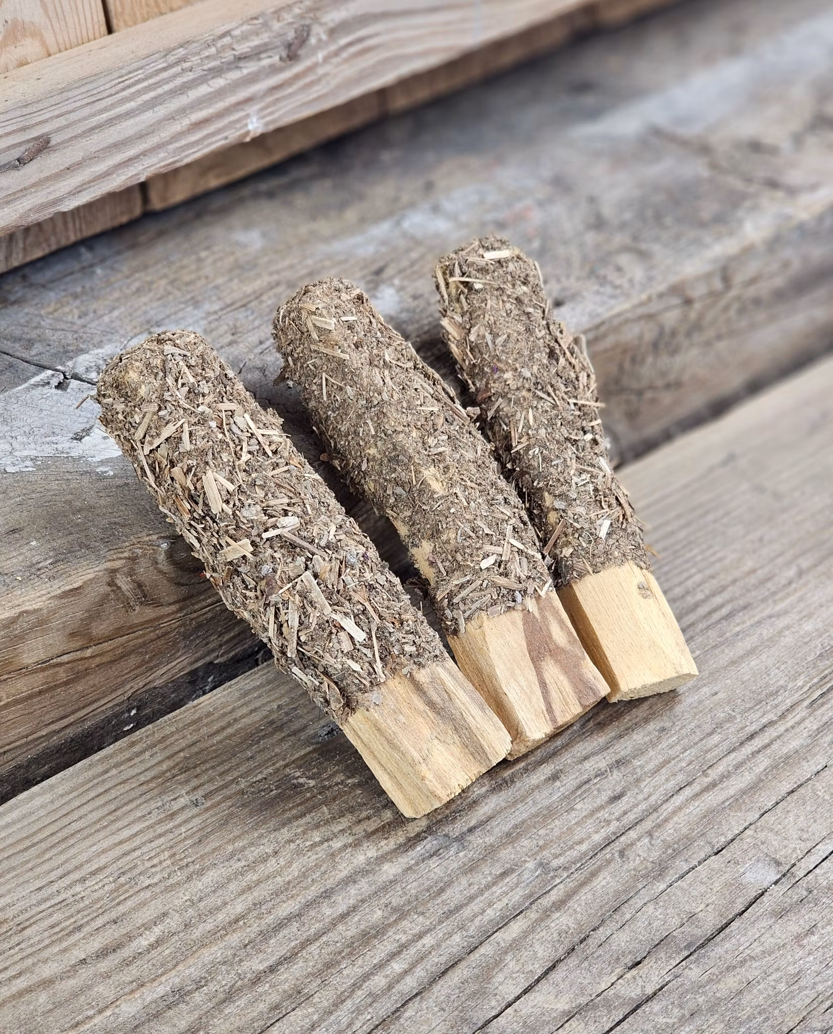 Viktigt att veta: Vår Palo Santo kommer från naturligt nerfallna träd, som således dött en naturlig död. De kommer ifrån Peru med certifikat & har torkat under många år för att få sin speciella doft. Dessa bidrar inte till regnskogsskövling eller förstörelse av skog & mark. Palo Santo har använts av Sydamerikas ursprungsbefolkningar, i olika former av ritualer sedan urminnes tider.