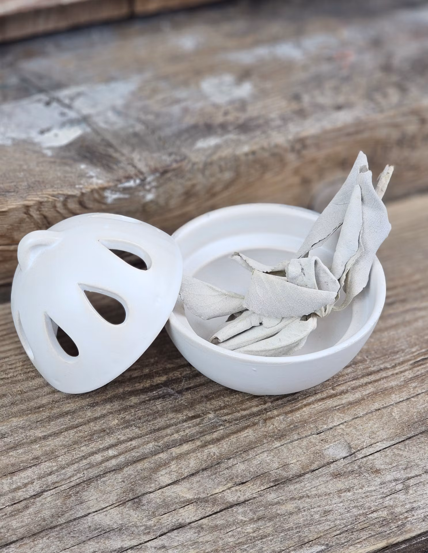 Rökelsebrännare, oval matt vit