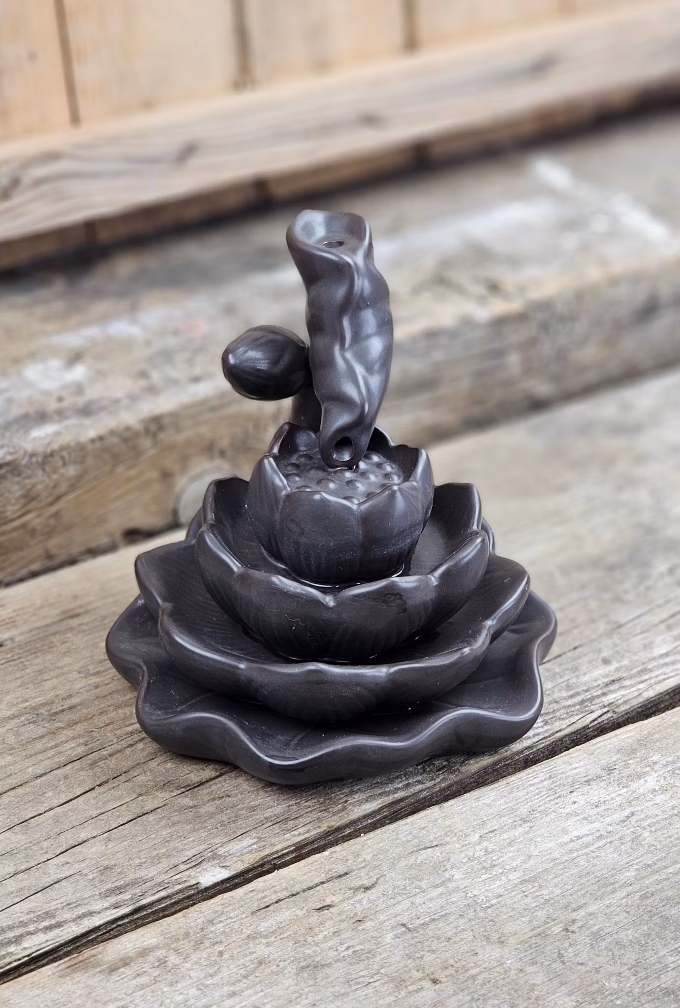 Rökelsehållare för backflow-koner, stor brun Lotus blad