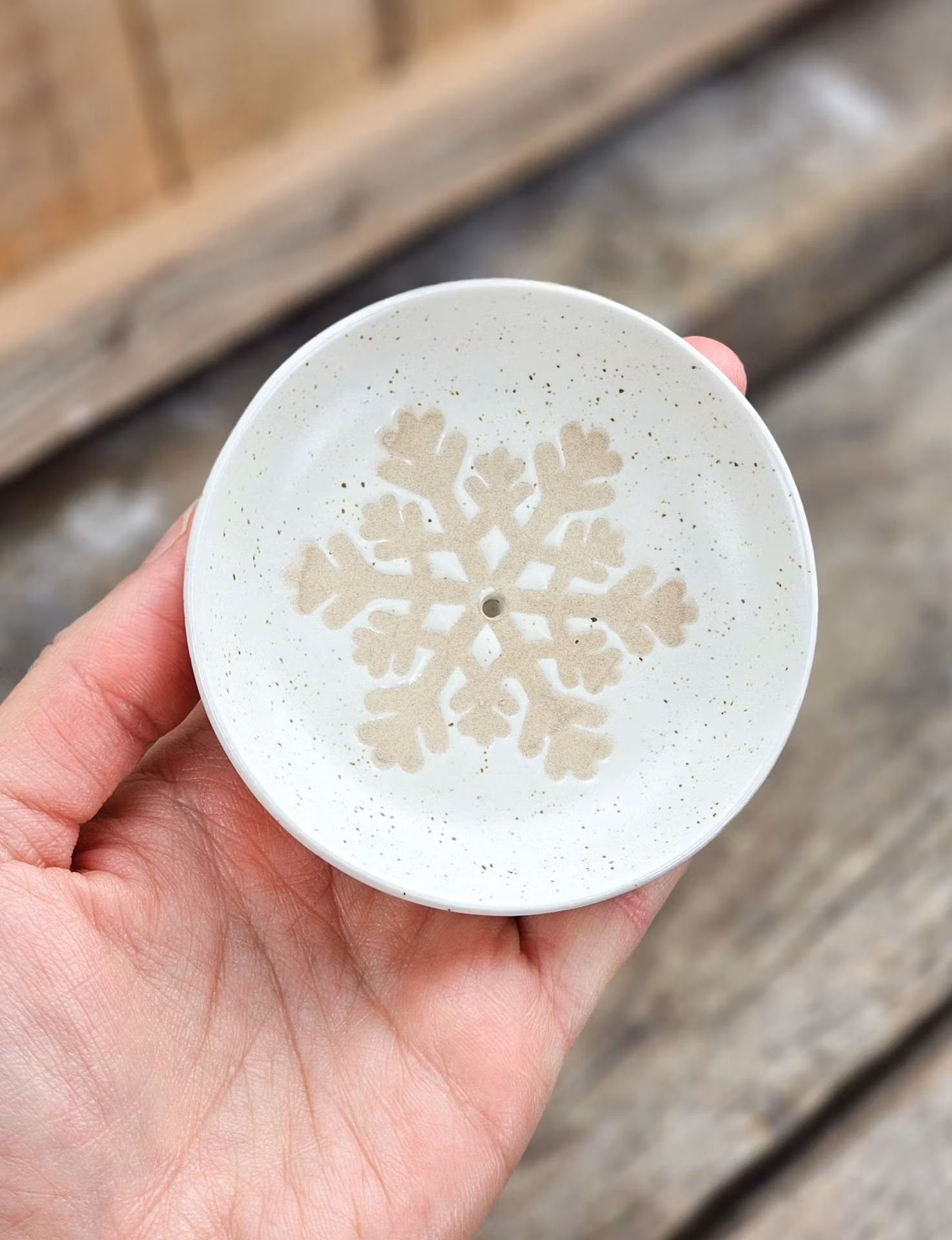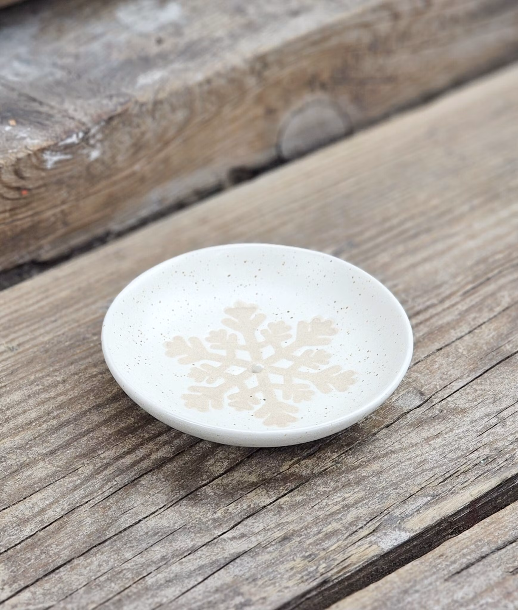 Vacker rökelsehållare i keramik med en klassisk snöflinga. Med spräcklig, benvit finish görs detta till en söt och diskret dekoration för alla hem under vintersäsongen. En del av North Pole Bakerys utbud av säsongsbetonade pepparkakspresenter och juldekor. Placeras på en värmetålig plats. Lämna aldrig tända rökelser obevakade. Håll utom räckhåll från barn och djur. Ventilera väl, ha gärna ett fönster öppet när du använder dig av rökelser så att röken kan ta sig ut. Säljes styckvis. Rökelser ingår ej, köpes separat i vår butik. Rengörs med fuktad trasa och mild såpa, produkten tål ej maskindisk eller mikrovågsugn. Du köper en rökelsehållare enligt text & bild ovan. Färger kan skilja sig beroende på hur ljuset faller ner på produkten samt även mellan olika bildskärmar m.m.