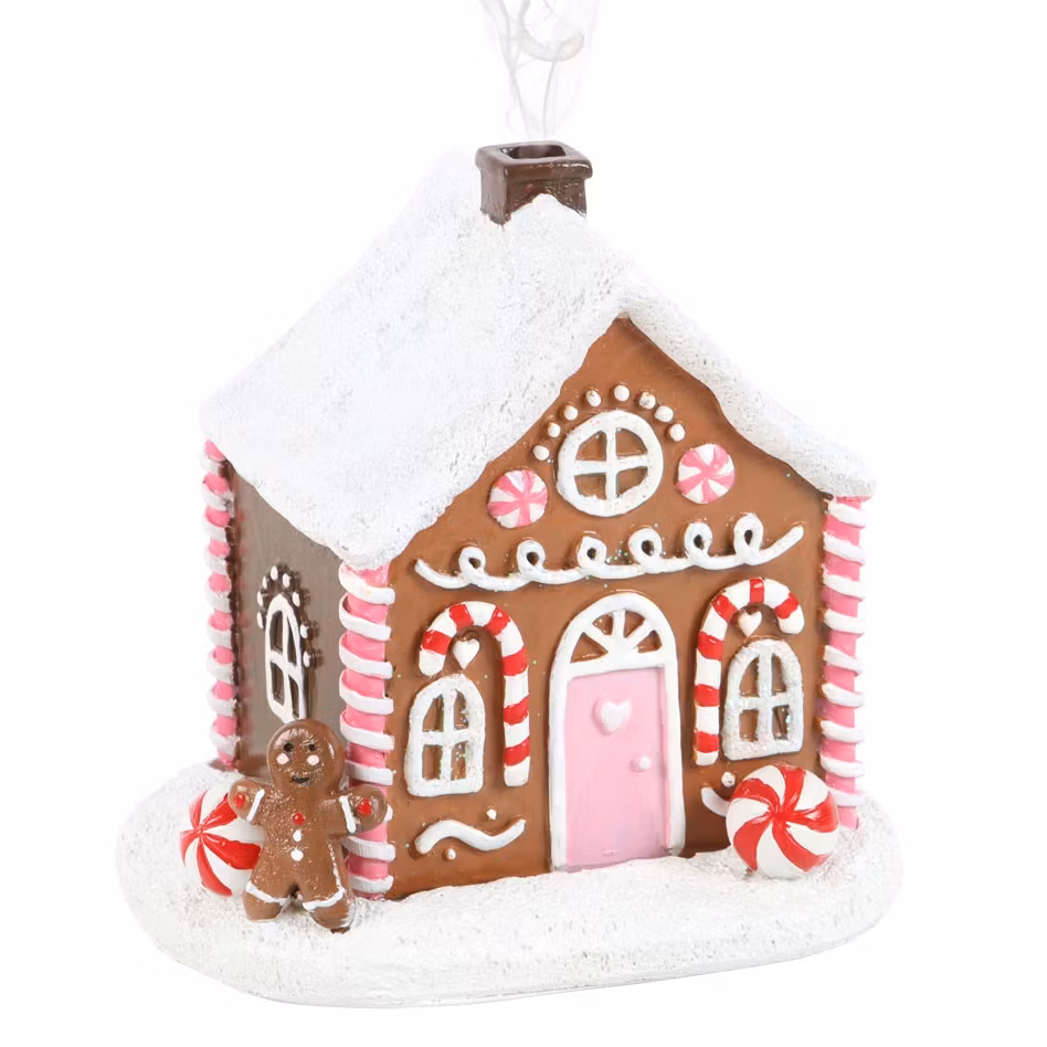 Rosa Pepparkakshus – rökelsehållare med julmagi