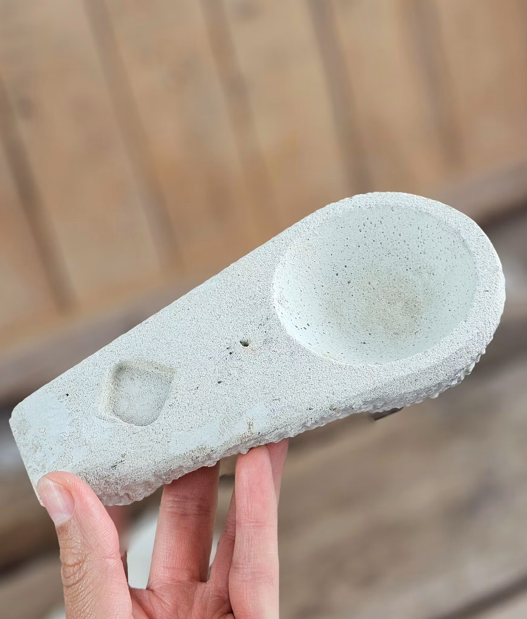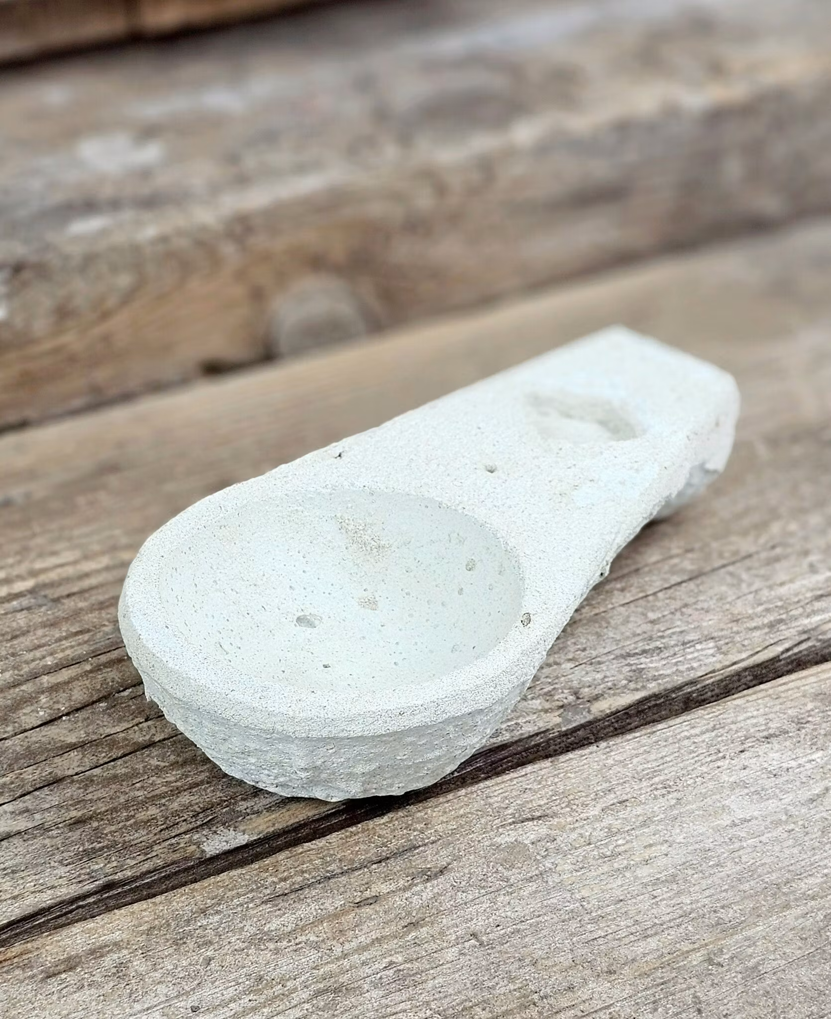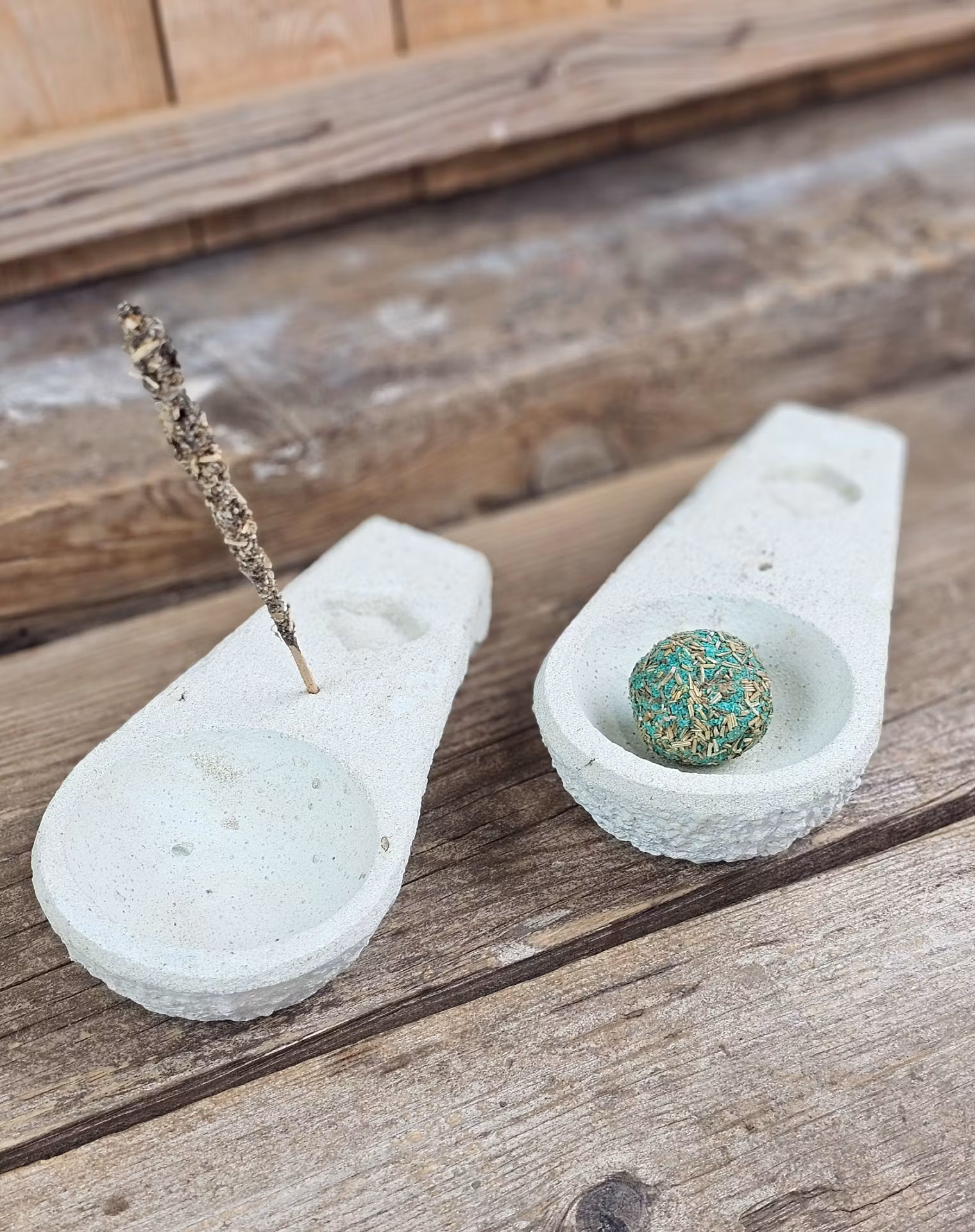 Mycket fint handgjort rökelsefat i cement med hål även för rökelsepinne. Sahumador är ett traditionellt ritualföremål från Sydamerika som tillverkas för hand och används för att bränna rökelse. Sahumador kan användas till att bränna t.ex. Palo Santo, Salvia, Bombitas, Trianglar och rökelsekol med egna örtblandningar. Sahumadoren kan enkelt bäras runt vid olika ritualer och för att fördela och sprida den renande och helande röken runt omkring dig. Denna rökelsehållare finns tillgänglig i flera olika färger hos oss. Här köper du i färgen salviagrön. Placeras på en värmetålig plats. Lämna aldrig tända rökelser obevakade. Håll utom räckhåll från barn och djur. Ventilera väl, ha gärna ett fönster öppet när du använder dig av rökelser så att röken kan ta sig ut. Rengörs med fuktad trasa och mild såpa, produkten tål ej maskindisk eller mikrovågsugn. Säljes styckvis. Rökelser ingår ej, köpes separat i vår butik. Tänk på att naturlig ojämnhet kan förekomma i produkten. Färger kan skilja sig beroende på hur ljuset faller ner på produkten samt även mellan olika bildskärmar m.m.
