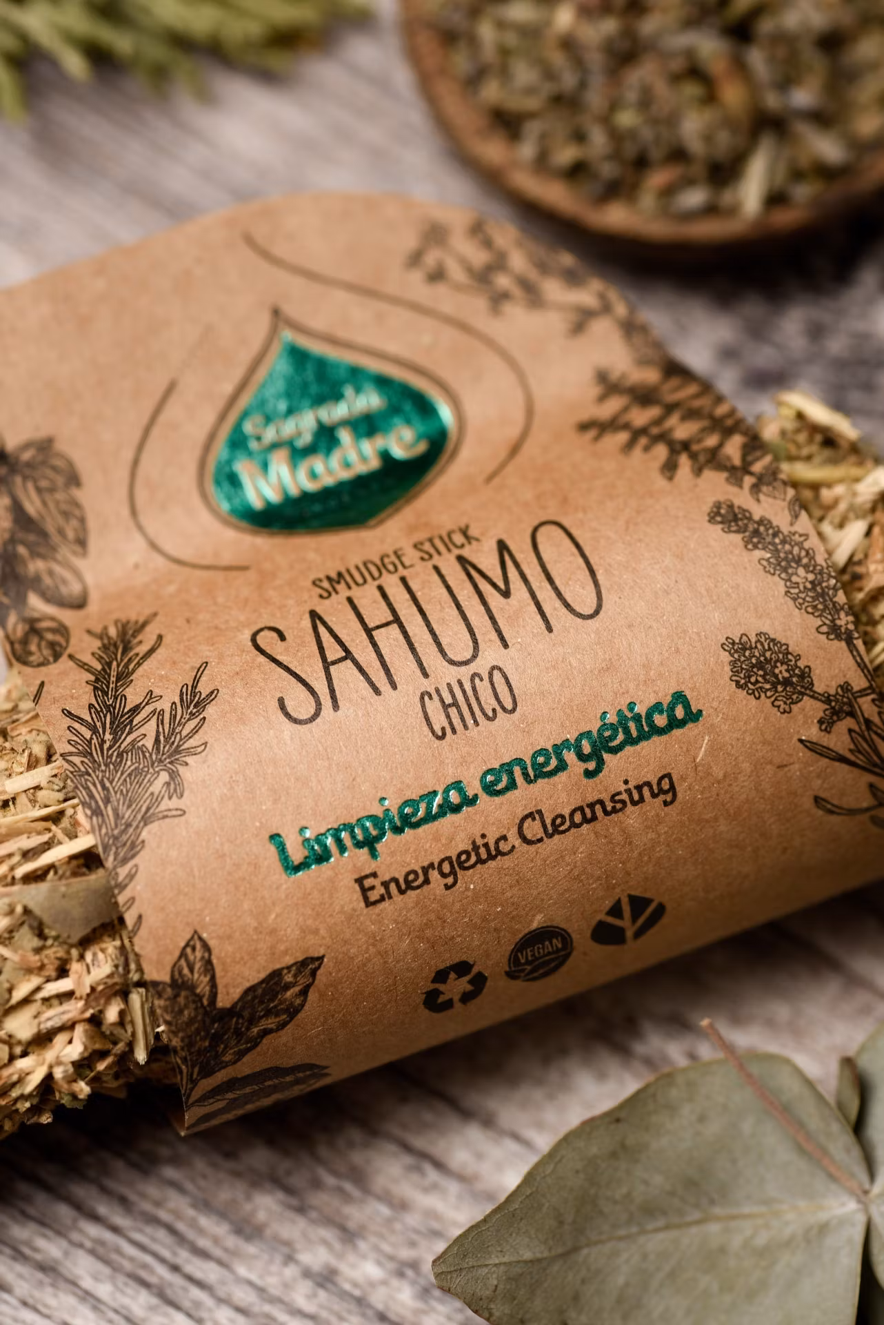 Märke: Sagrada Madre. Sagrada Madre betyder "Helig Moder" (Pancha Mama) och detta namn speglar hur de behandlar jordens resurser. Det är ett märke med väldoftande och högkvalitativa rökelser som tillverkas i Argentina. Förutom träkol använder Sagrada Madre en doftfri fruktbaserad biomassa som förbränningsmedel. Varje år slängs över 100 ton fruktbiomassa från industriell bearbetning såsom juicetillverkning. Istället för att låta dessa material gå till spillo, återanvänder Sagrada Madre dem effektivt i deras rökelser. En 100% unik naturprodukt, handgjord i Argentina av pulveriserade örter, hartser (kåda) och blommor, ihop med ett växtbaserat bindemedel. Alla varianter av Sagrada Madre rökelse är noggrant förpackade i attraktivt naturligt förpackningsmaterial för att skapa så liten påverkan på miljön som möjligt.