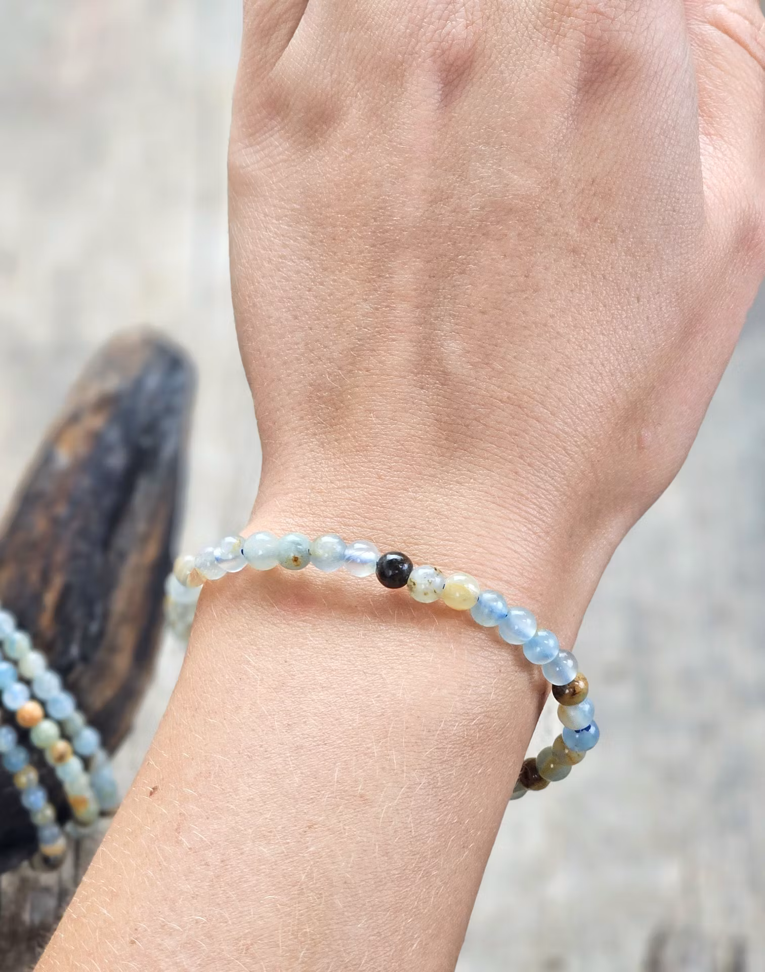 Mycket fina elastiska armband i Blå/Brun Onyx. Väldigt nätt & stilren modell som är mycket fin att ha bara en runt handleden eller flera tillsammans. Säljes styckvis. Du köper slumpvis liknande smycke enligt text & bild ovan. Tänk på att kristaller kommer från naturen & naturliga sprickor & ojämnhet kan förekomma. Färger kan skilja sig beroende på hur ljuset faller ner på kristallen samt även mellan olika bildskärmar m.m.