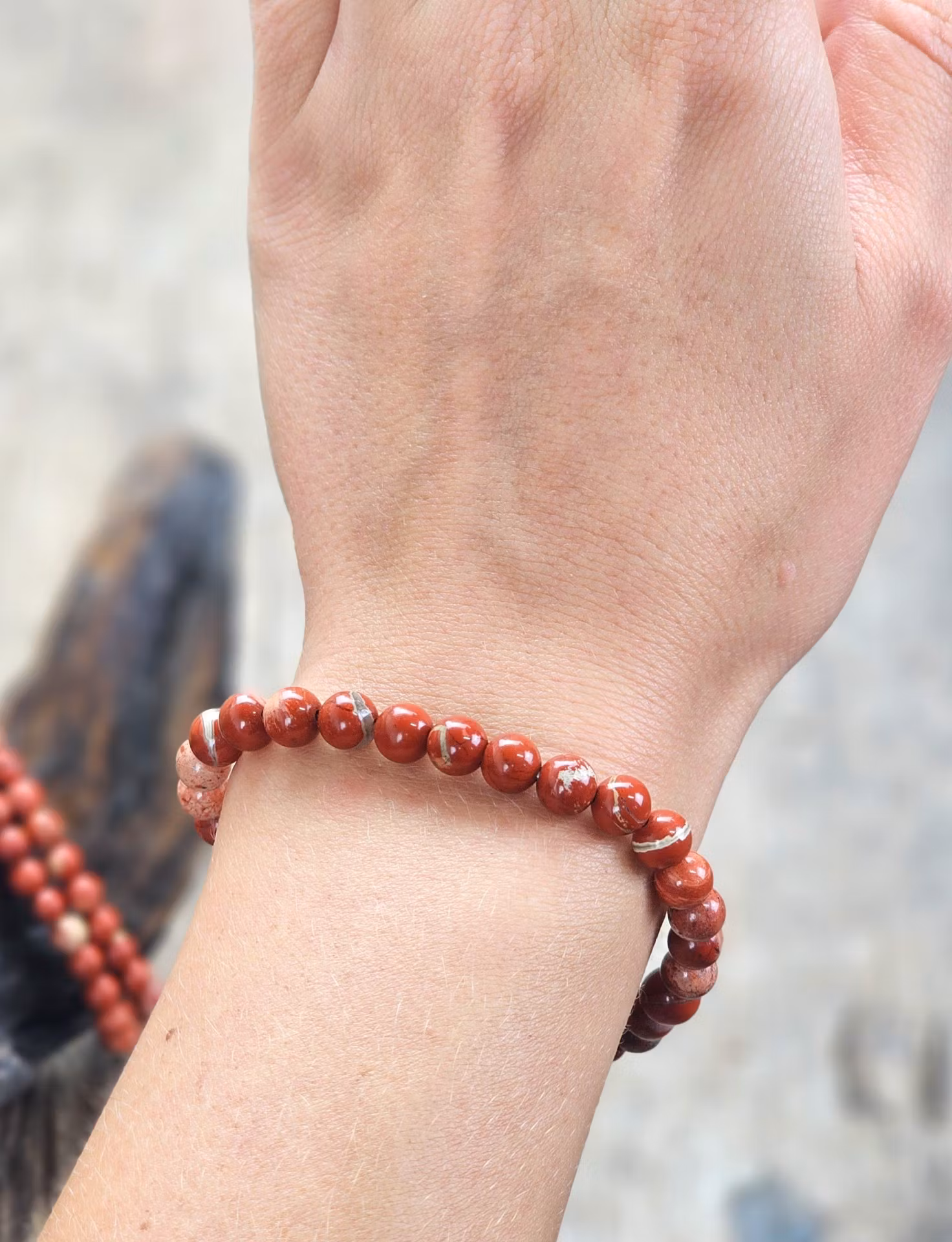 Mycket vackert elastiskt armband i Breccijaspis. Väldigt nätt & stilren modell som är mycket fin att ha bara en runt handleden eller flera tillsammans. Säljes styckvis. Du köper slumpvis liknande smycke enligt text & bild ovan. Tänk på att kristaller kommer från naturen & naturliga sprickor & ojämnhet kan förekomma. Färger kan skilja sig beroende på hur ljuset faller ner på kristallen samt även mellan olika bildskärmar m.m.
