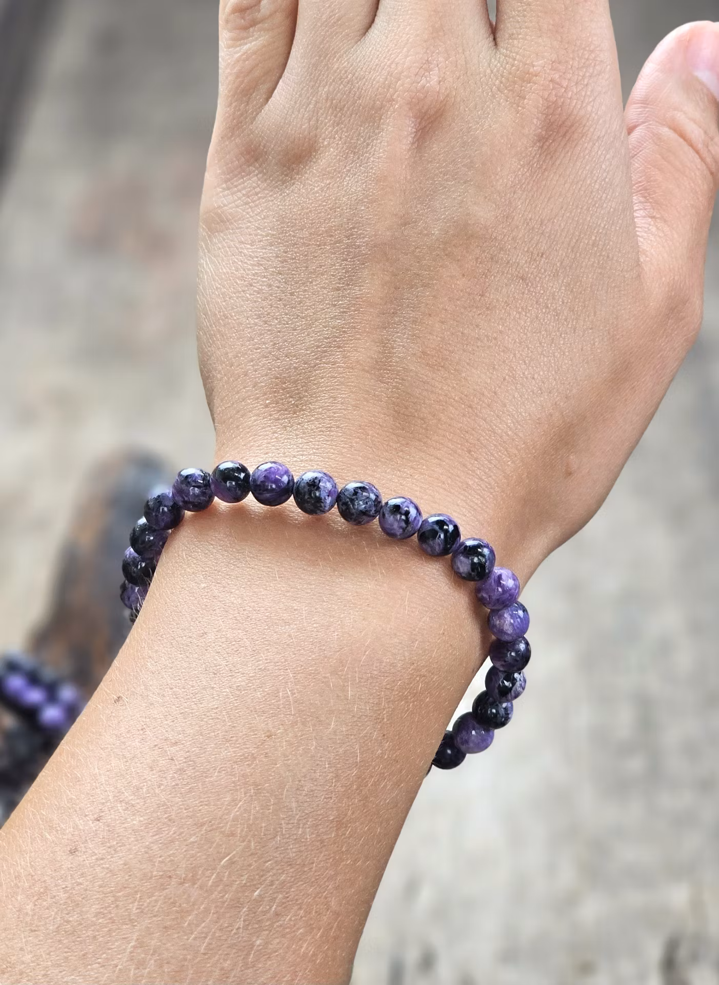 Charoit, armband 6mm runda pärlor