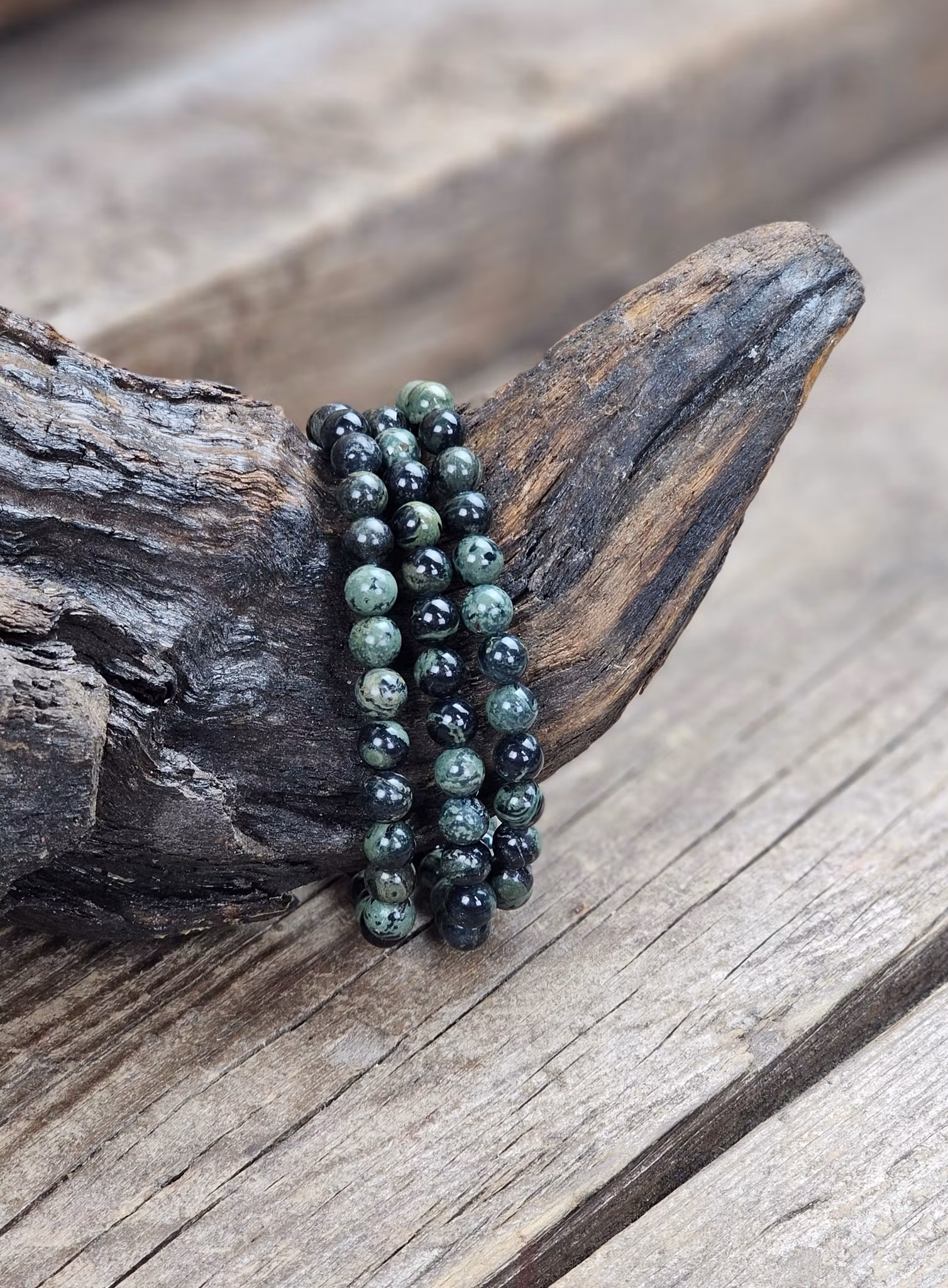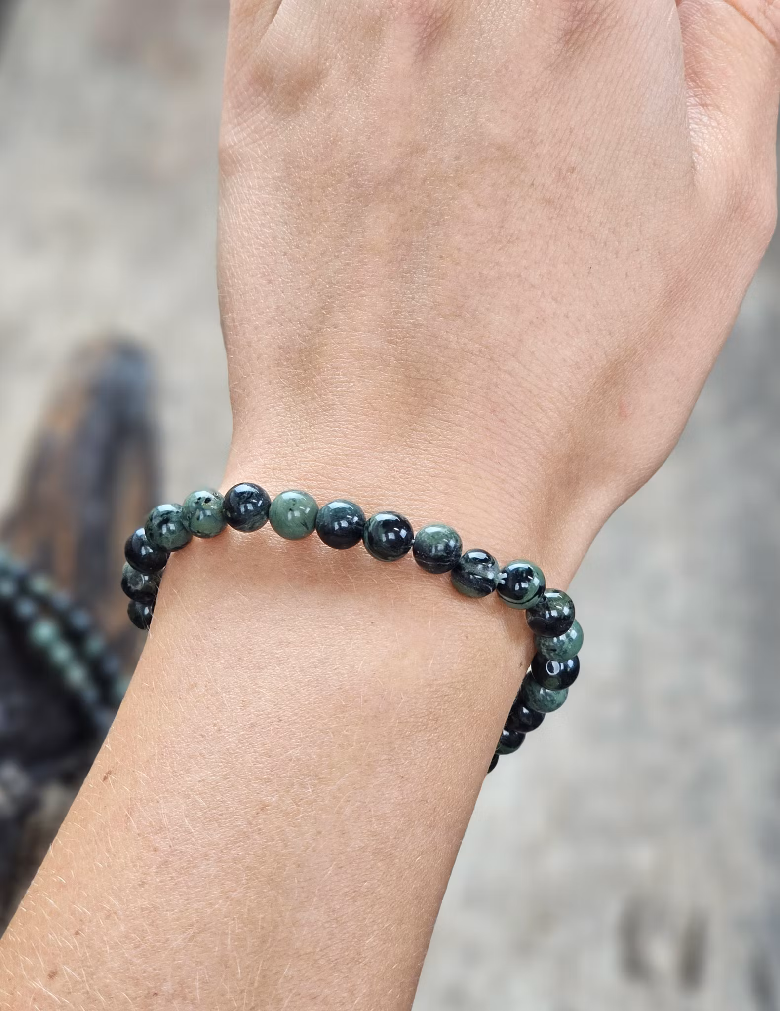 Mycket vackert elastiskt armband i Kambabajaspis. Väldigt nätt & stilren modell som är mycket fin att ha bara en runt handleden eller flera tillsammans. Säljes styckvis. Du köper slumpvis liknande smycke enligt text & bild ovan. Tänk på att kristaller kommer från naturen & naturliga sprickor & ojämnhet kan förekomma. Färger kan skilja sig beroende på hur ljuset faller ner på kristallen samt även mellan olika bildskärmar m.m.