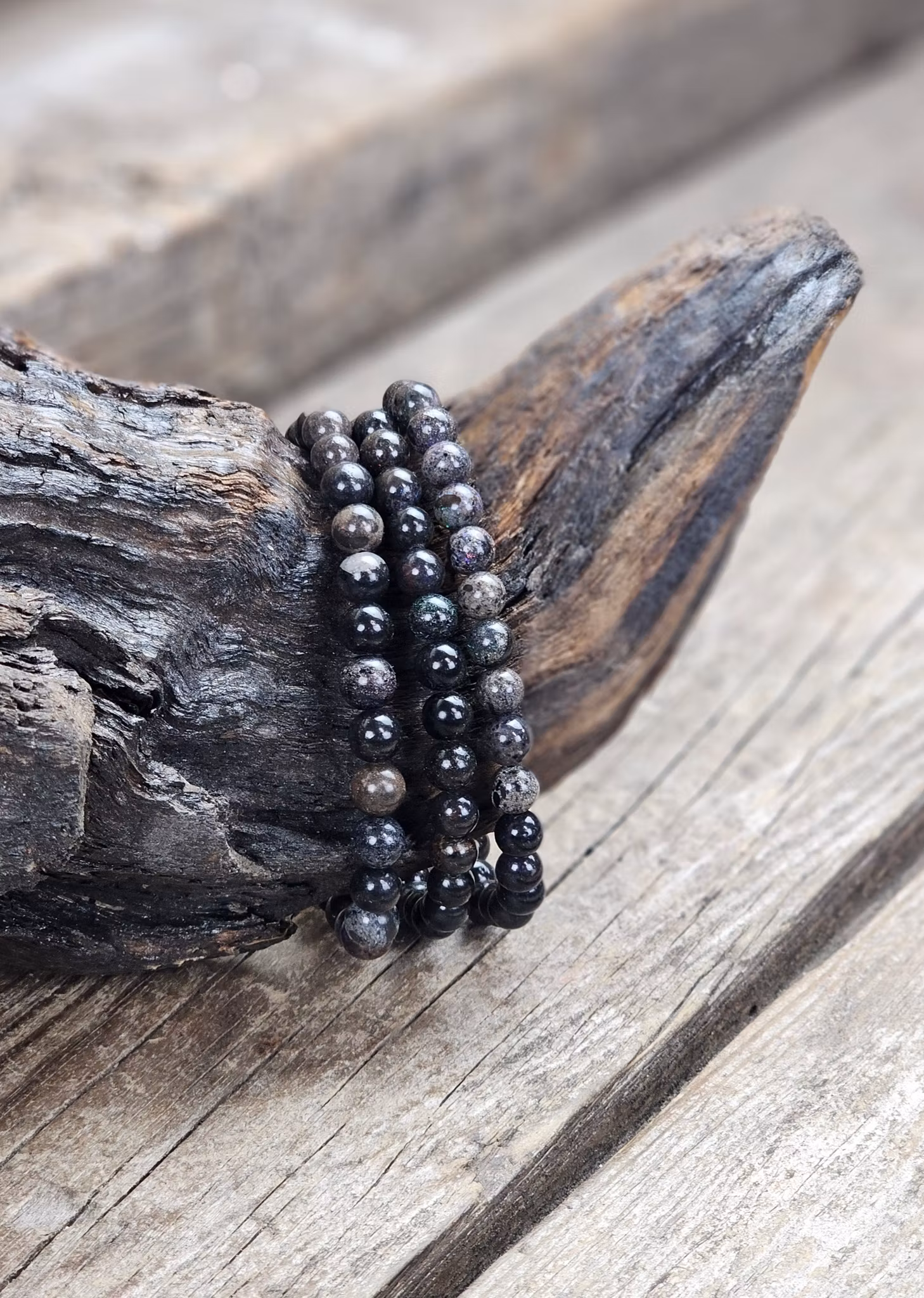 Mycket vackra elastiska armband i Svart Opal med fantastiskt opaliserande skimmer i. Väldigt nätt & stilren modell som är mycket fin att ha bara en runt handleden eller flera tillsammans. Säljes styckvis. Du köper slumpvis liknande smycke enligt text & bild ovan. Tänk på att kristaller kommer från naturen & naturliga sprickor & ojämnhet kan förekomma. Färger kan skilja sig beroende på hur ljuset faller ner på kristallen samt även mellan olika bildskärmar m.m.