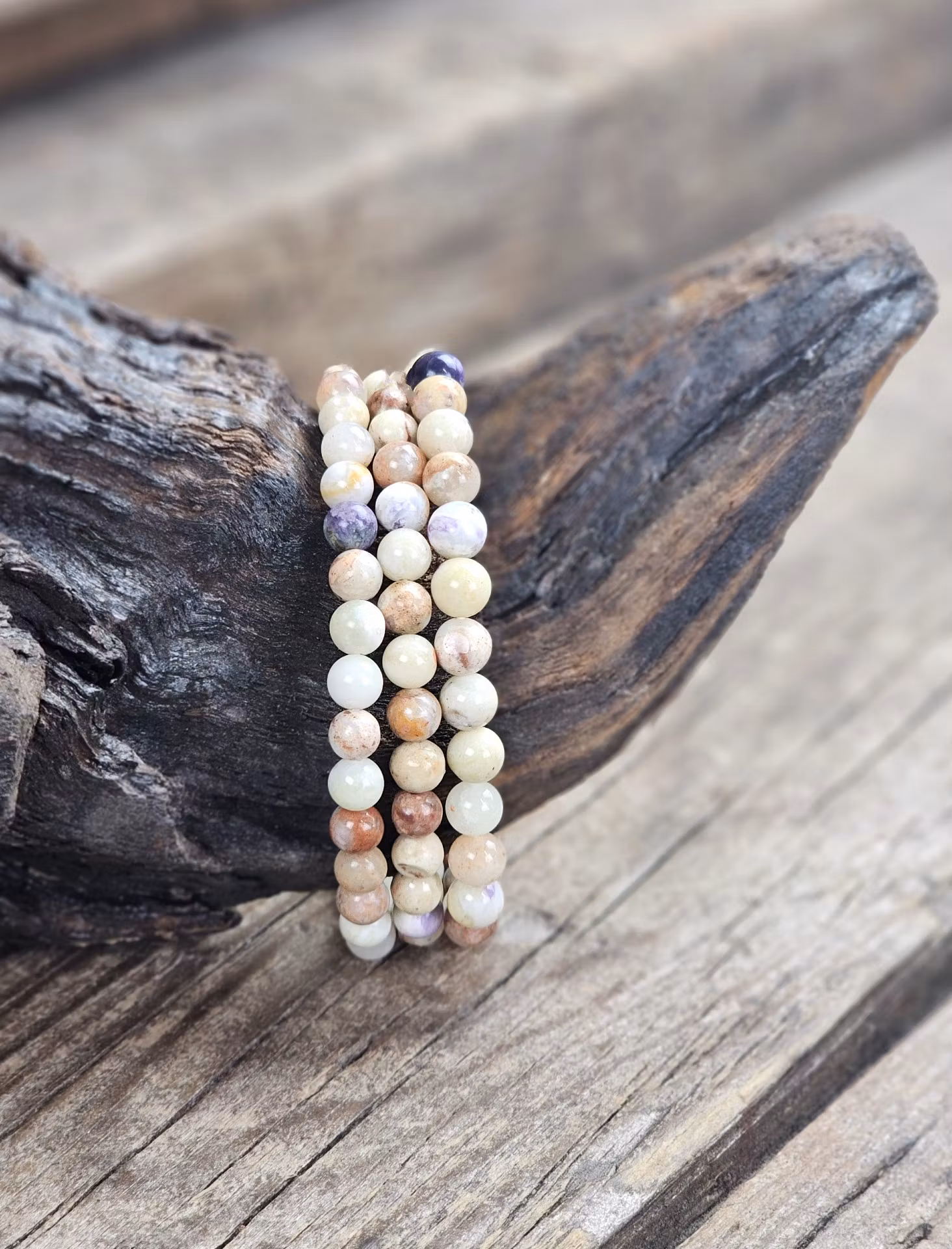 Mycket vackra elastiska armband i Tiffany Stone, en mer ovanlig sten med vackra lila inslag av opaliserad Fluorit. Väldigt nätt & stilren modell som är mycket fin att ha bara en runt handleden eller flera tillsammans. Säljes styckvis. Du köper slumpvis liknande smycke enligt text & bild ovan. Tänk på att kristaller kommer från naturen & naturliga sprickor & ojämnheter kan förekomma. Färger kan skilja sig beroende på hur ljuset faller ner på kristallen samt även mellan olika bildskärmar m.m.