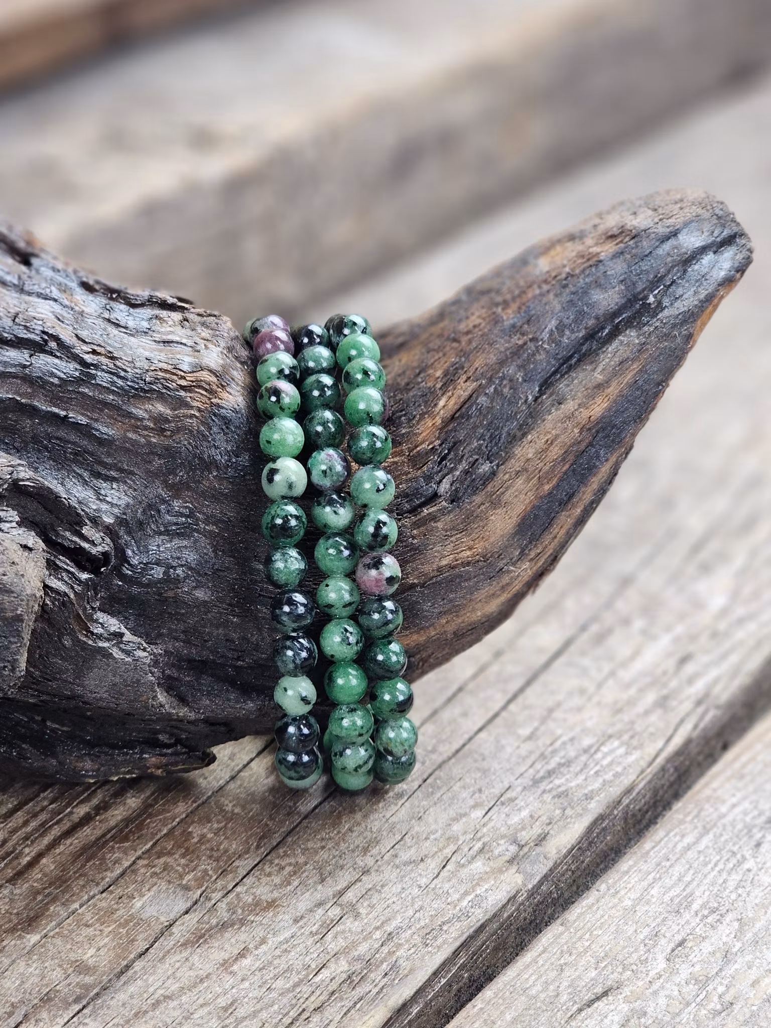 Zoisit med Rubin, armband 6mm runda pärlor