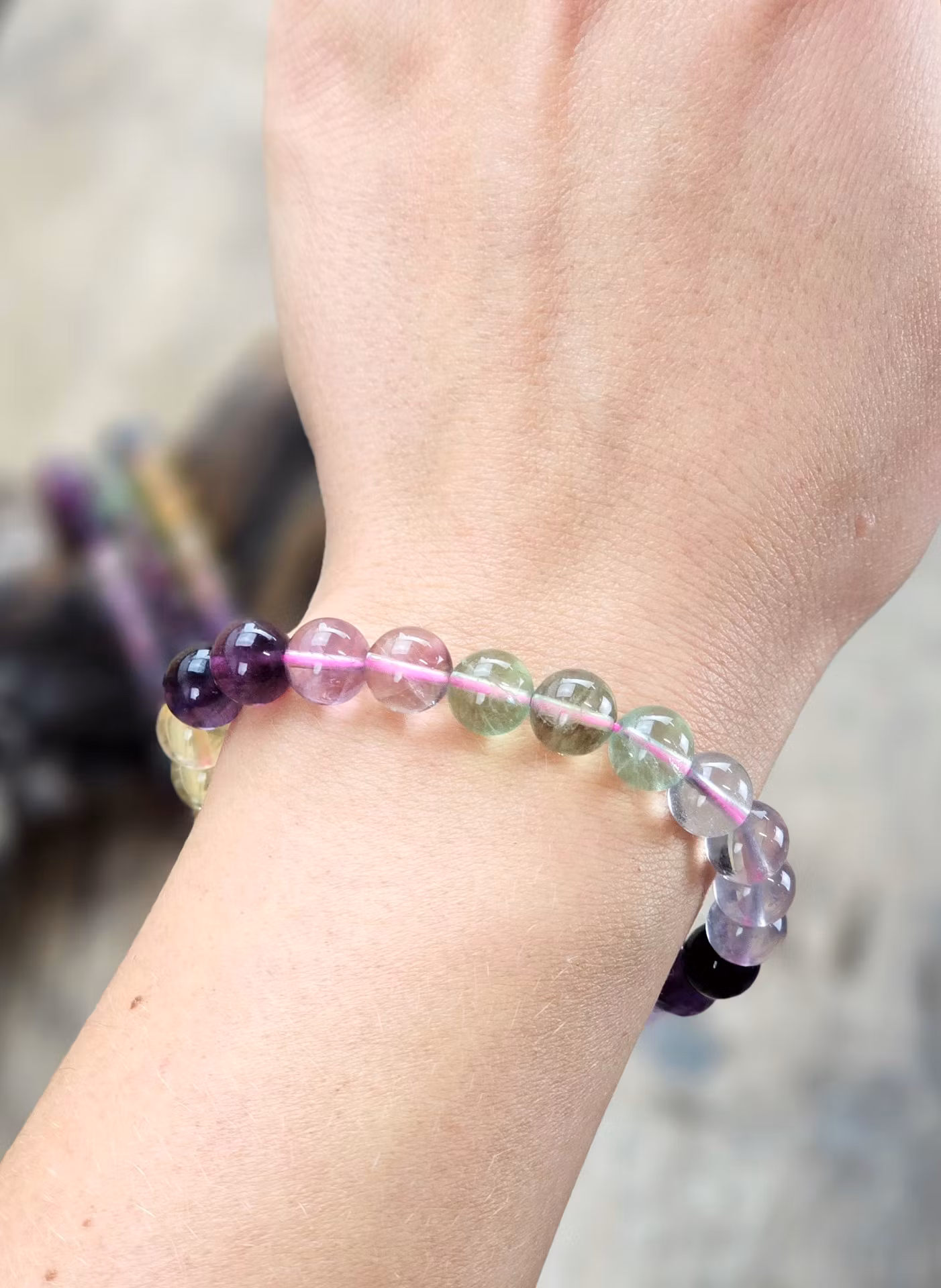 Mycket vackert elastiskt armband i en helt fantastisk färgmix av Fluorit i absolut högsta kvalité. Väldigt nätt & stilren modell som är mycket fin att ha bara en runt handleden eller flera tillsammans. Säljes styckvis. Du köper slumpvis liknande smycke enligt text & bild ovan. Tänk på att kristaller kommer från naturen & naturliga sprickor & ojämnheter kan förekomma. Färger kan skilja sig beroende på hur ljuset faller ner på kristallen samt även mellan olika bildskärmar m.m.