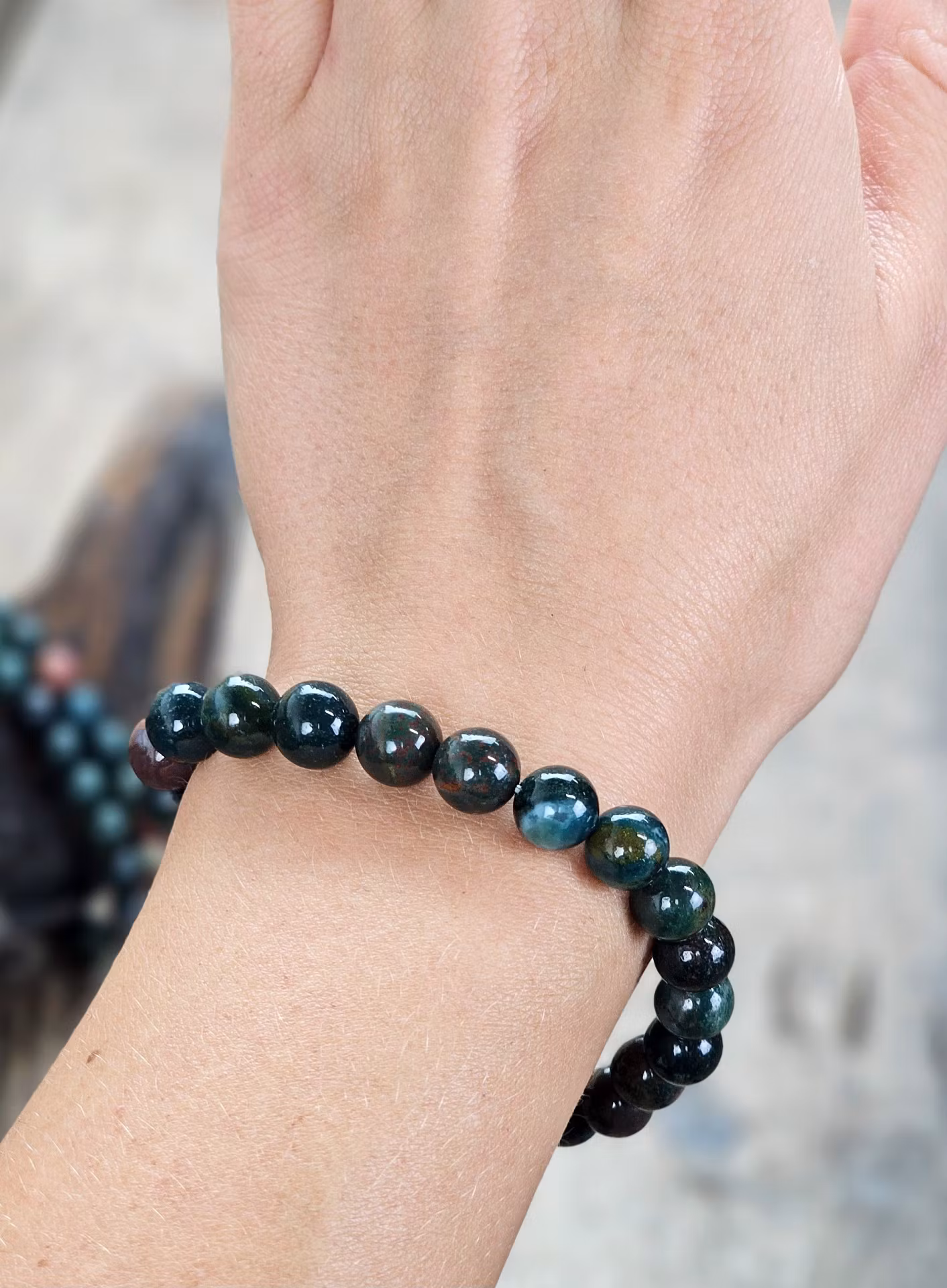 Mycket vackert elastiskt armband i Heliotrop. Väldigt nätt & stilren modell som är mycket fin att ha bara en runt handleden eller flera tillsammans. Säljes styckvis. Du köper slumpvis liknande smycke enligt text & bild ovan. Tänk på att kristaller kommer från naturen & naturliga sprickor & ojämnheter kan förekomma. Färger kan skilja sig beroende på hur ljuset faller ner på kristallen samt även mellan olika bildskärmar m.m.