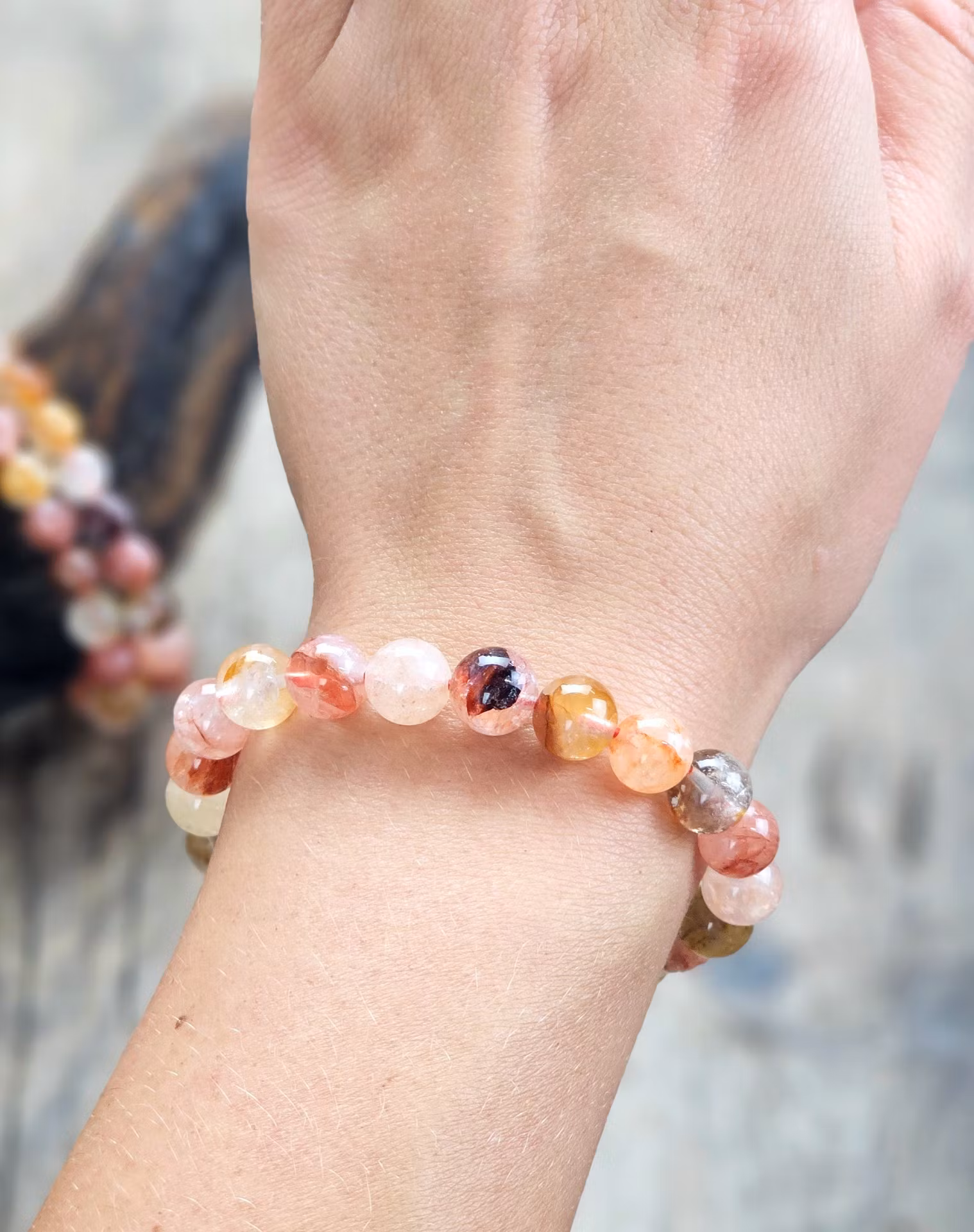 Mycket vackert elastiskt armband i en mix av Golden Healer och Hematoidkvarts (även kallad Röd Golden Healer) i riktigt fin kvalité. Säljes styckvis. Du köper slumpvis liknande smycke enligt text & bild ovan. Tänk på att kristaller kommer från naturen & naturliga sprickor & ojämnhet kan förekomma. Färger kan skilja sig beroende på hur ljuset faller ner på kristallen samt även mellan olika bildskärmar m.m.
