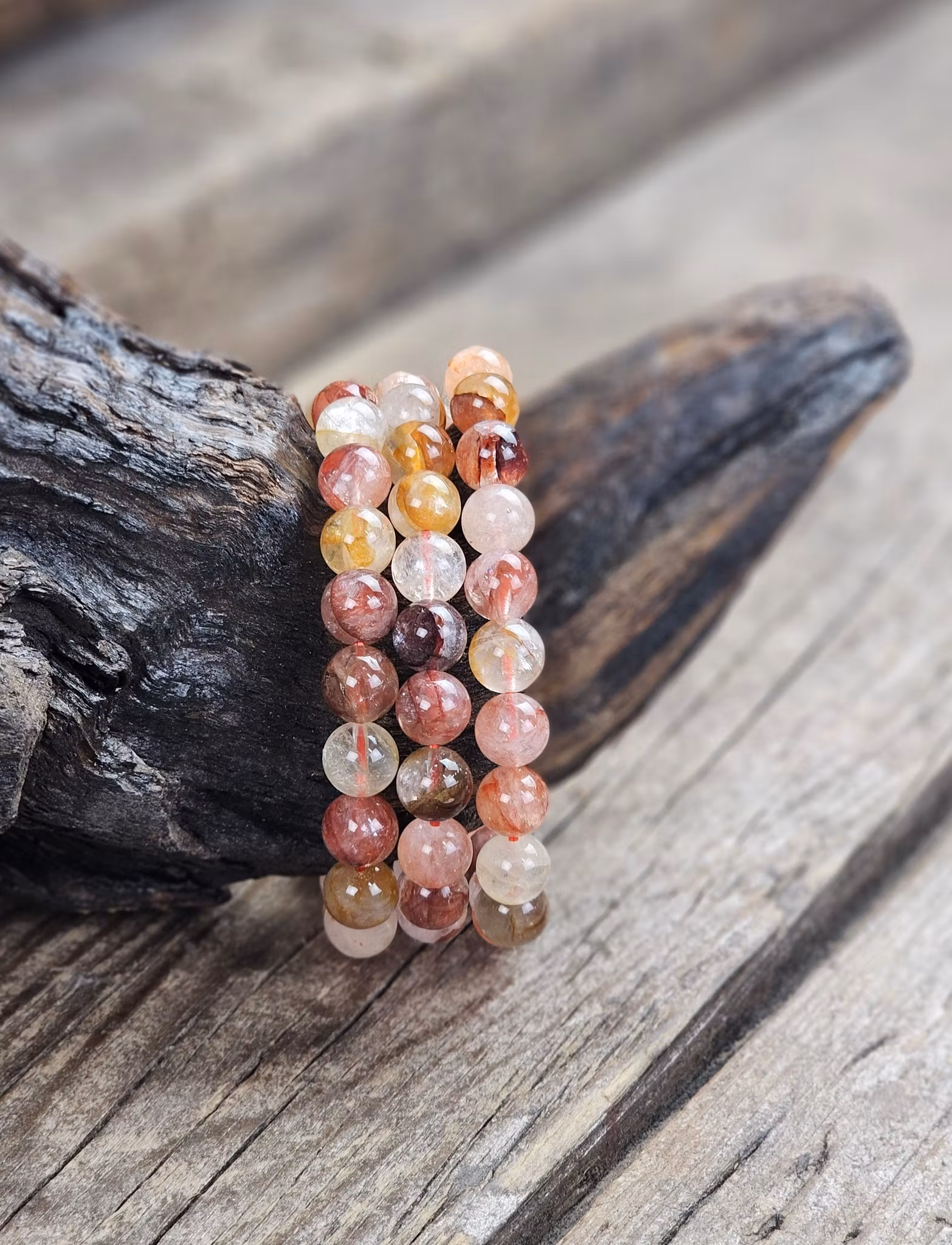Golden Healer & Hematoidkvarts (Röd Golden Healer) mix, armband 8mm runda pärlor