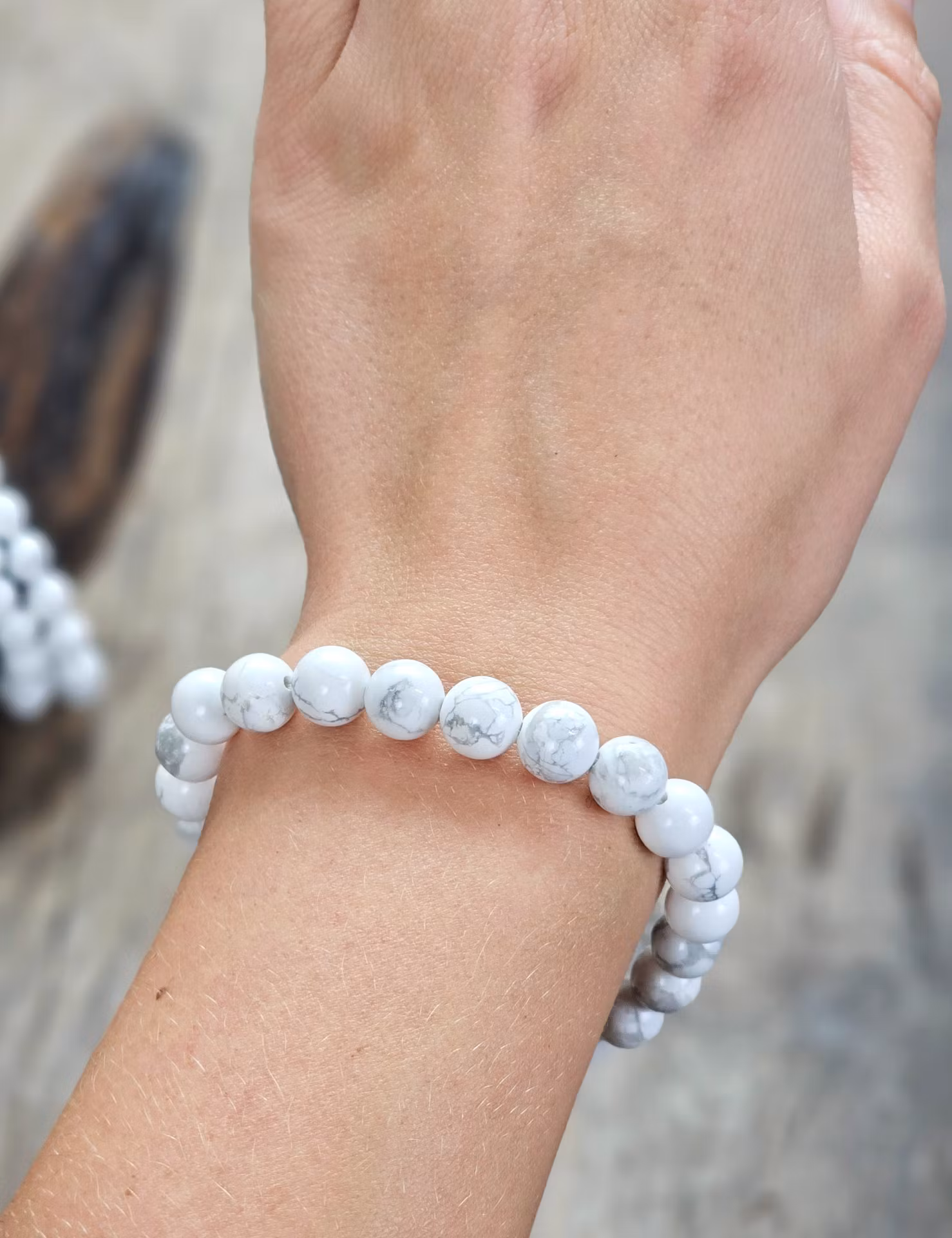 Mycket vackert elastiskt armband i Howlit. Väldigt nätt & stilren modell som är mycket fin att ha bara en runt handleden eller flera tillsammans. Säljes styckvis. Du köper slumpvis liknande smycke enligt text & bild ovan. Tänk på att kristaller kommer från naturen & naturliga sprickor & ojämnheter kan förekomma. Färger kan skilja sig beroende på hur ljuset faller ner på kristallen samt även mellan olika bildskärmar m.m.