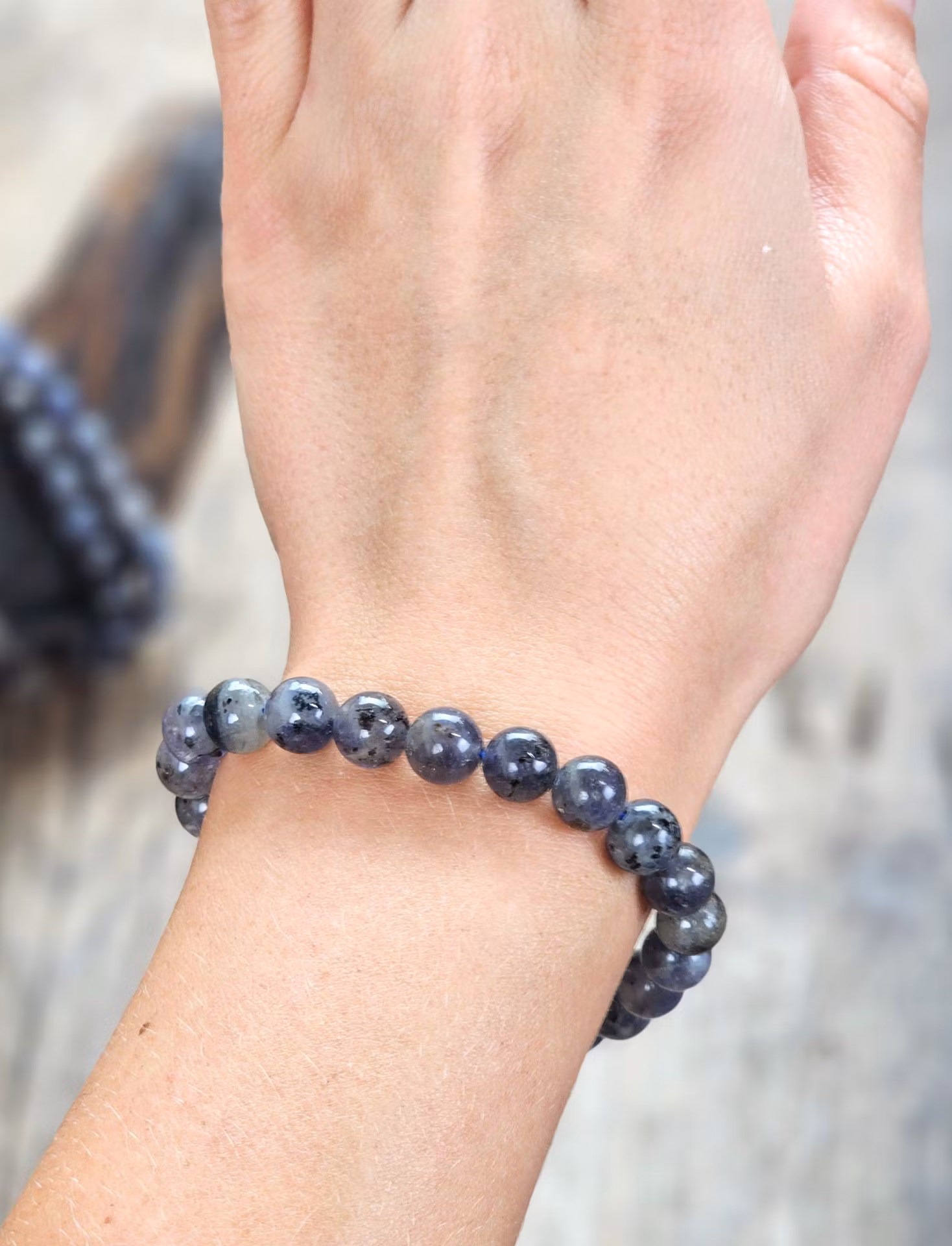 Iolit (Vattensafir), armband 8mm runda pärlor