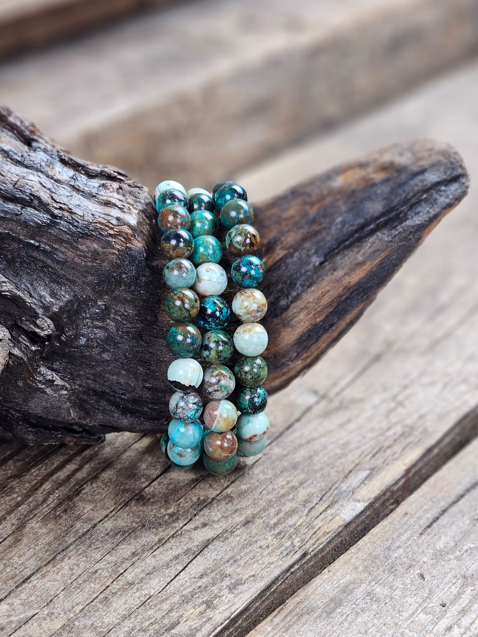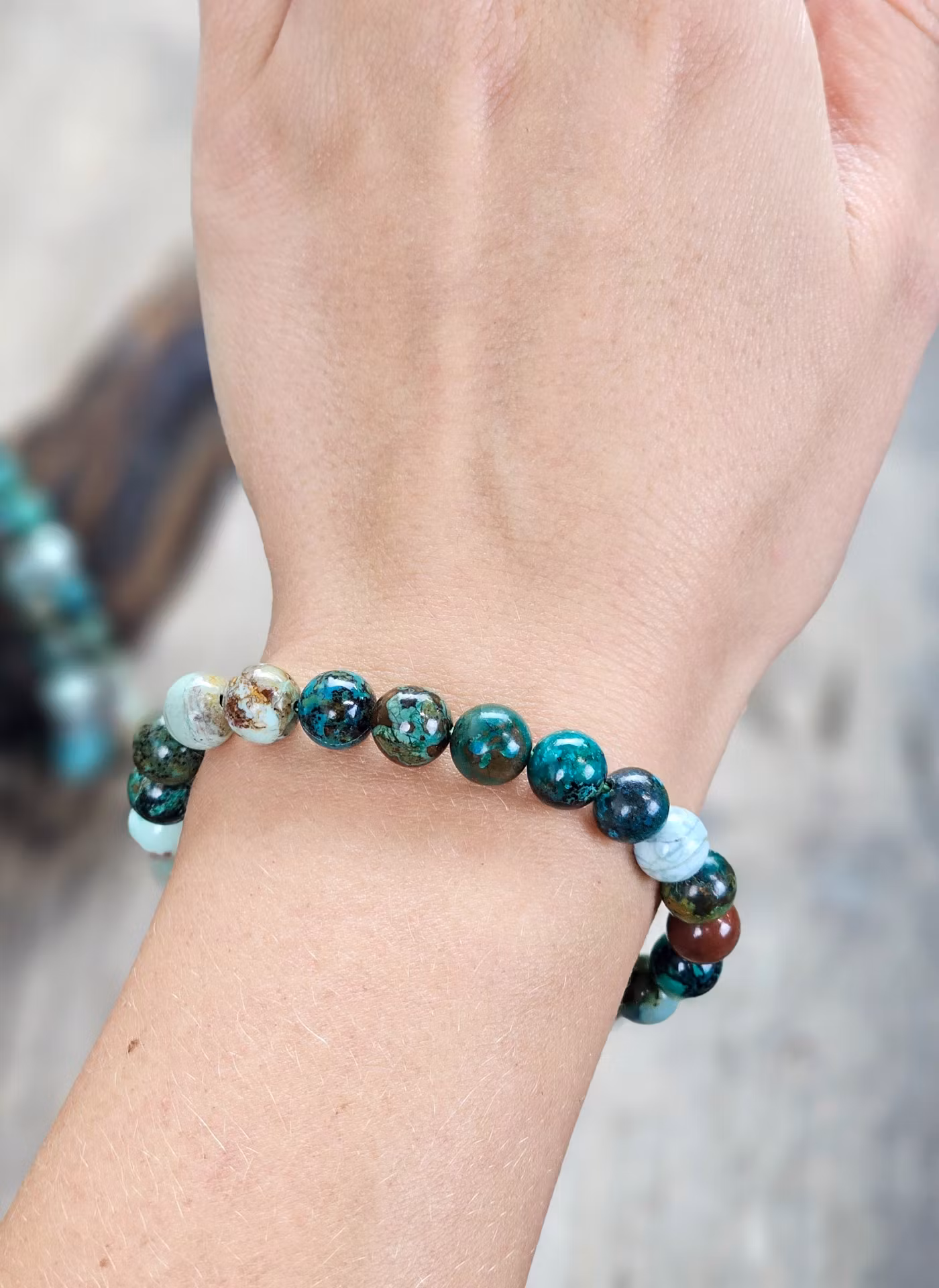 Krysokolla, armband 8mm runda pärlor