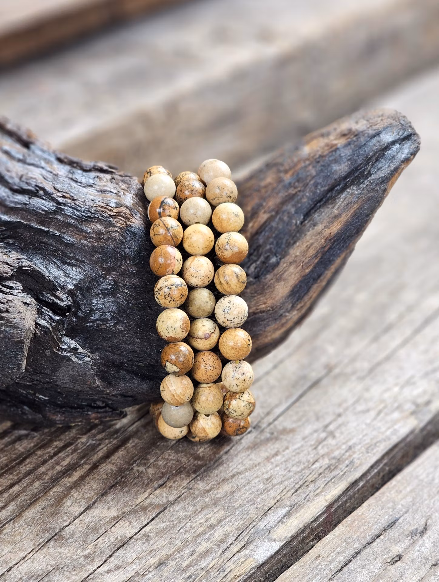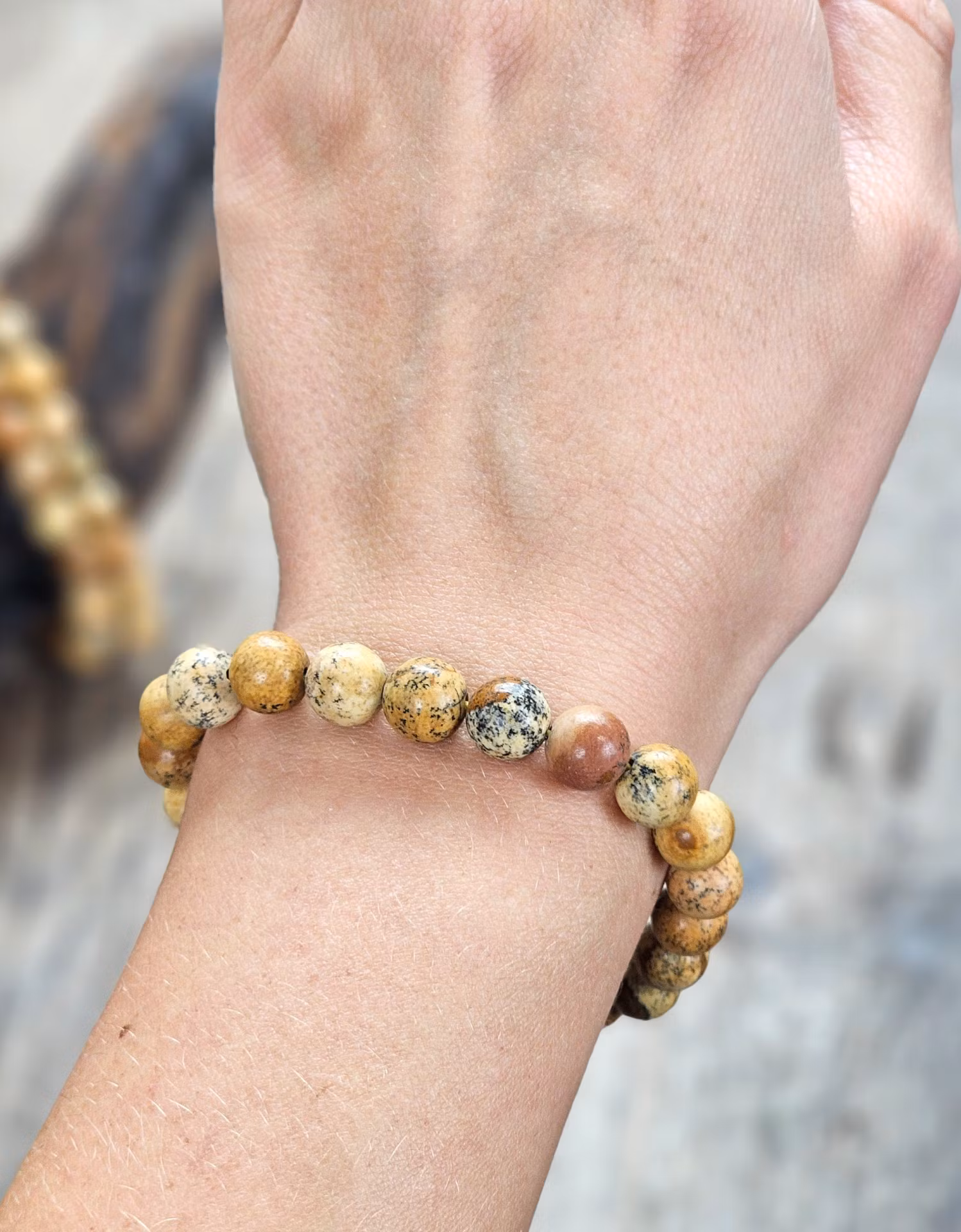 Mycket vackert elastiskt armband i Landskapsjaspis. Väldigt nätt & stilren modell som är mycket fin att ha bara en runt handleden eller flera tillsammans. Säljes styckvis. Du köper slumpvis liknande smycke enligt text & bild ovan. Tänk på att kristaller kommer från naturen & naturliga sprickor & ojämnhet kan förekomma. Färger kan skilja sig beroende på hur ljuset faller ner på kristallen samt även mellan olika bildskärmar m.m.