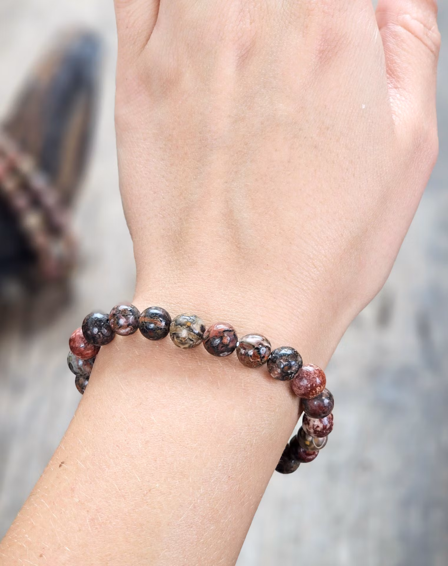 Mycket vackert elastiskt armband i Leopardjaspis. Väldigt nätt & stilren modell som är mycket fin att ha bara en runt handleden eller flera tillsammans. Säljes styckvis. Du köper slumpvis liknande smycke enligt text & bild ovan. Tänk på att kristaller kommer från naturen & naturliga sprickor & ojämnhet kan förekomma. Färger kan skilja sig beroende på hur ljuset faller ner på kristallen samt även mellan olika bildskärmar m.m.