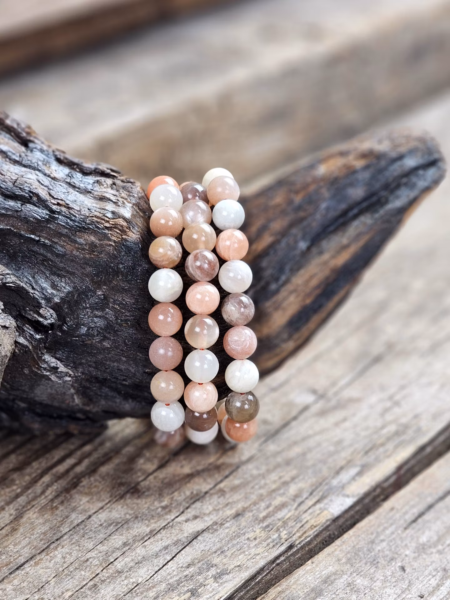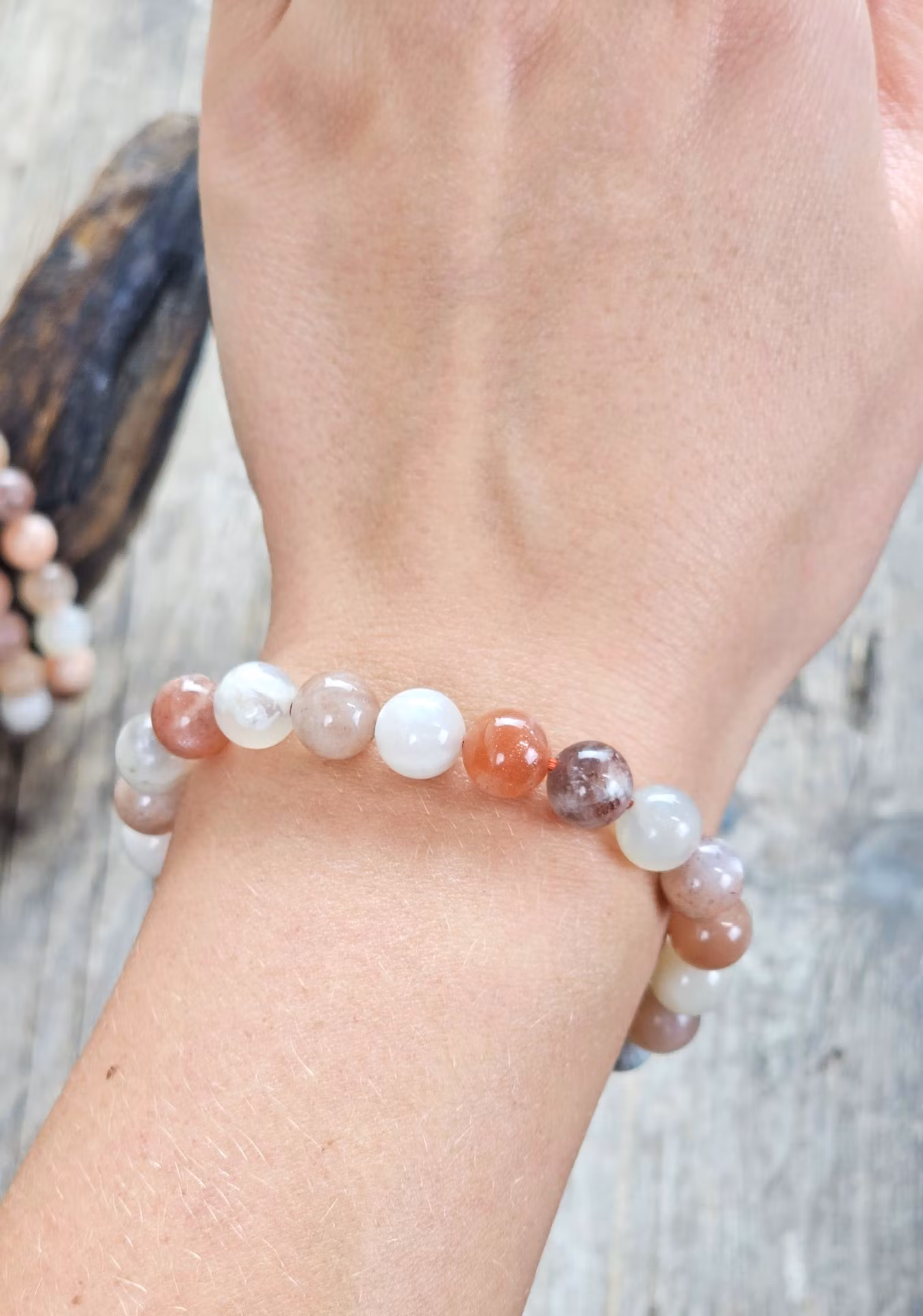Månsten mix, armband 8mm runda pärlor