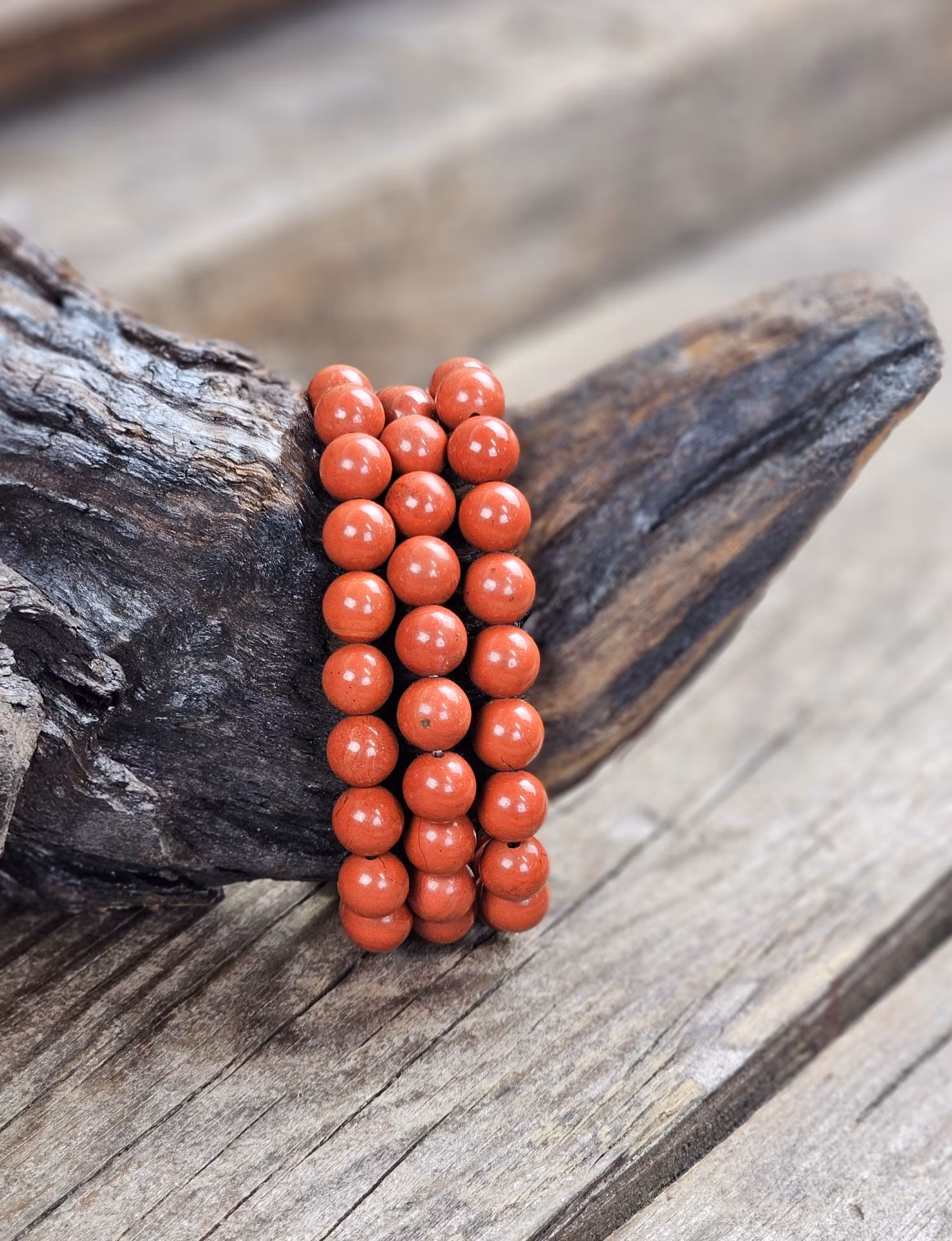 Mycket vackert elastiskt armband i Röd Jaspis. Väldigt nätt & stilren modell som är mycket fin att ha bara en runt handleden eller flera tillsammans. Säljes styckvis. Du köper slumpvis liknande smycke enligt text & bild ovan. Tänk på att kristaller kommer från naturen & naturliga sprickor & ojämnhet kan förekomma. Färger kan skilja sig beroende på hur ljuset faller ner på kristallen samt även mellan olika bildskärmar m.m.