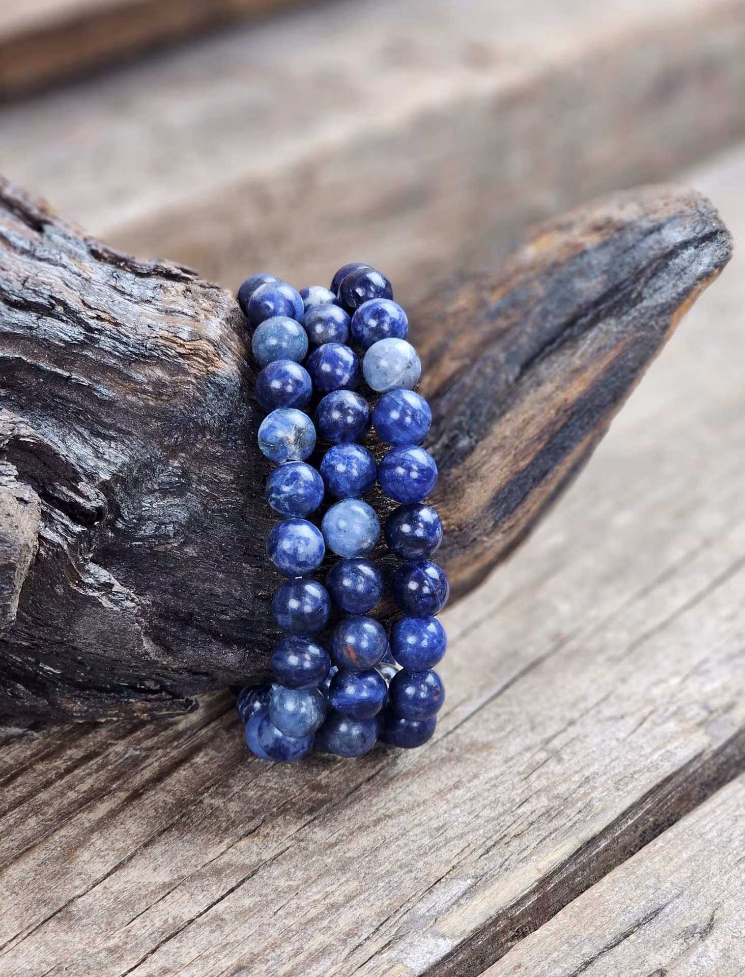 Mycket vackert elastiskt armband i Sodalit i mycket fin kvalité. Väldigt stilren modell som är mycket fin att ha bara en runt handleden eller flera tillsammans. Säljes styckvis. Du köper ett smycke enligt text & bild ovan. Tänk på att kristaller kommer från naturen, små skillnader kan därför förekomma i produktens utseende på grund av dess naturmaterial. Färger kan skilja sig beroende på hur ljuset faller ner på kristallen samt även mellan olika bildskärmar m.m.