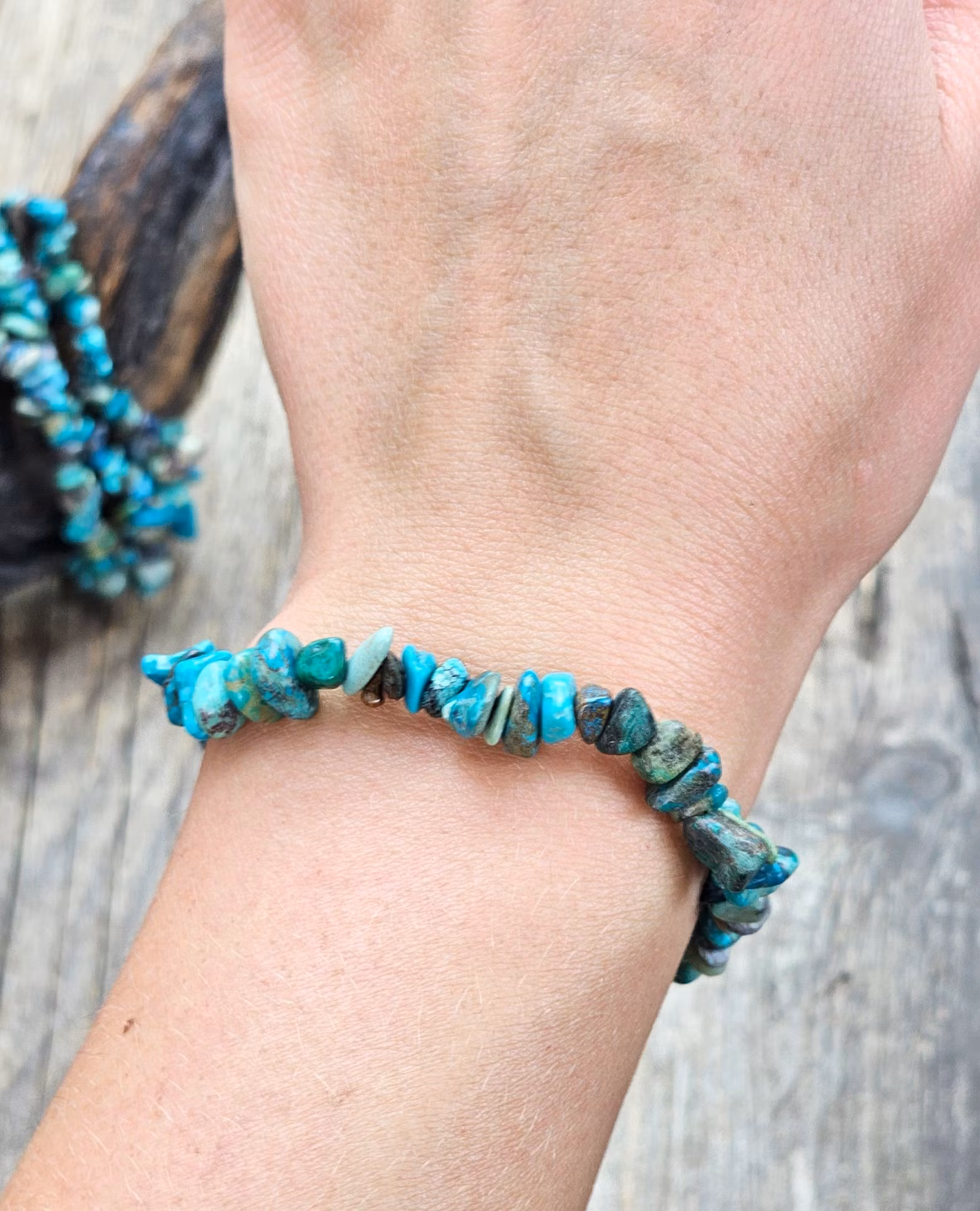 Mycket vackert elastiskt armband i Äkta Turkos i mycket fin kvalité. Väldigt nätt & stilren modell som är mycket fin att ha bara en runt handleden eller flera tillsammans. Säljes styckvis. Du köper slumpvis liknande smycke enligt text & bild ovan. Tänk på att kristaller kommer från naturen & naturliga sprickor & ojämnhet kan förekomma. Färger kan skilja sig beroende på hur ljuset faller ner på kristallen samt även mellan olika bildskärmar m.m.