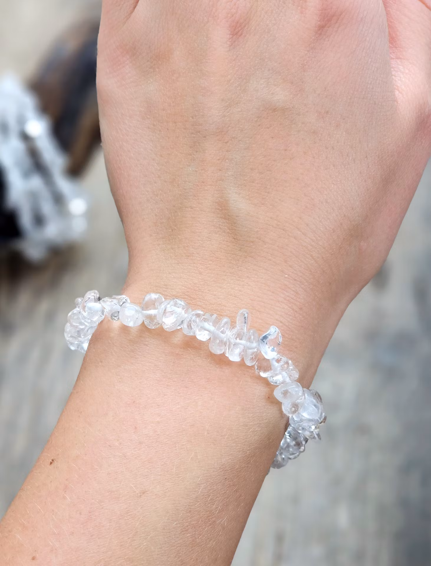 Mycket vackert elastiskt armband i Bergkristall i jättefin kvalité. Väldigt nätt & stilren modell som är mycket fin att ha bara en runt handleden eller flera tillsammans. De varierar i utseende. Säljes styckvis. Du köper ett smycke enligt text & bild ovan. Tänk på att kristaller kommer från naturen, små skillnader kan därför förekomma i produktens utseende på grund av dess naturmaterial. Färger kan skilja sig beroende på hur ljuset faller ner på kristallen samt även mellan olika bildskärmar m.m.