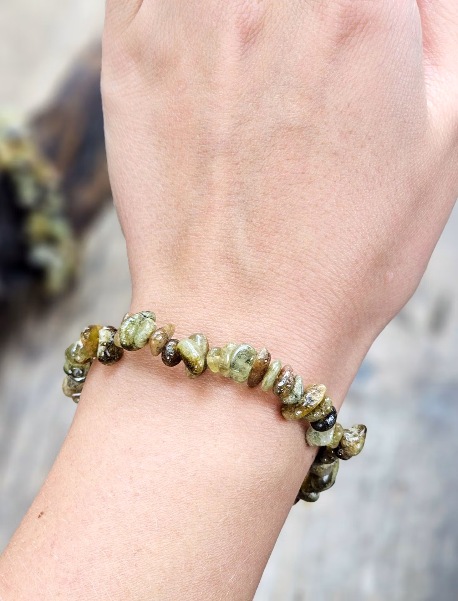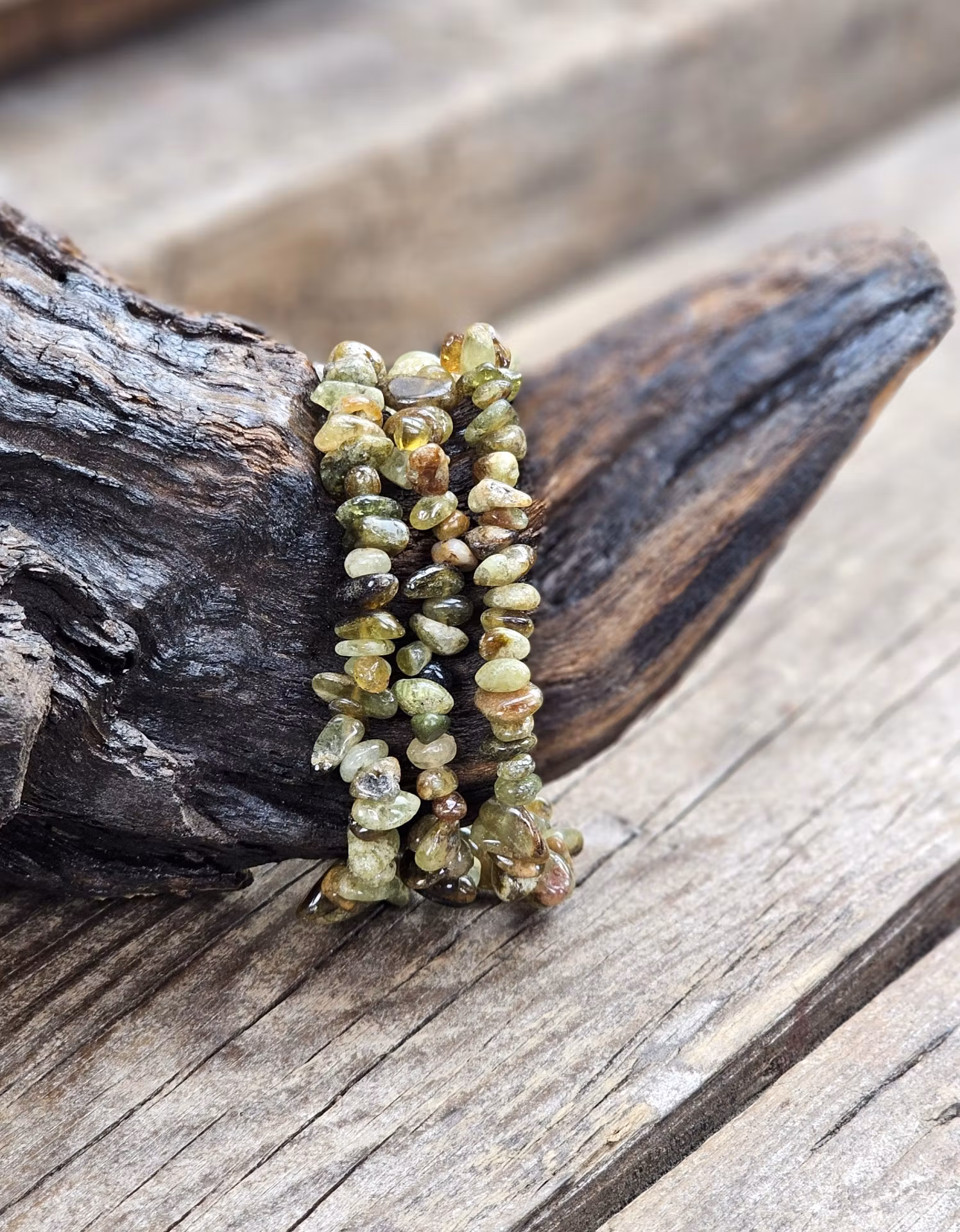Mycket vackert elastiskt armband i riktigt läcker Grön Granat. Väldigt nätt & stilren modell som är mycket fin att ha bara en runt handleden eller flera tillsammans. Säljes styckvis. Du köper ett smycke enligt text & bild ovan. Tänk på att kristaller kommer från naturen, små skillnader kan därför förekomma i produktens utseende på grund av dess naturmaterial. Färger kan skilja sig beroende på hur ljuset faller ner på produkten samt även mellan olika bildskärmar m.m.