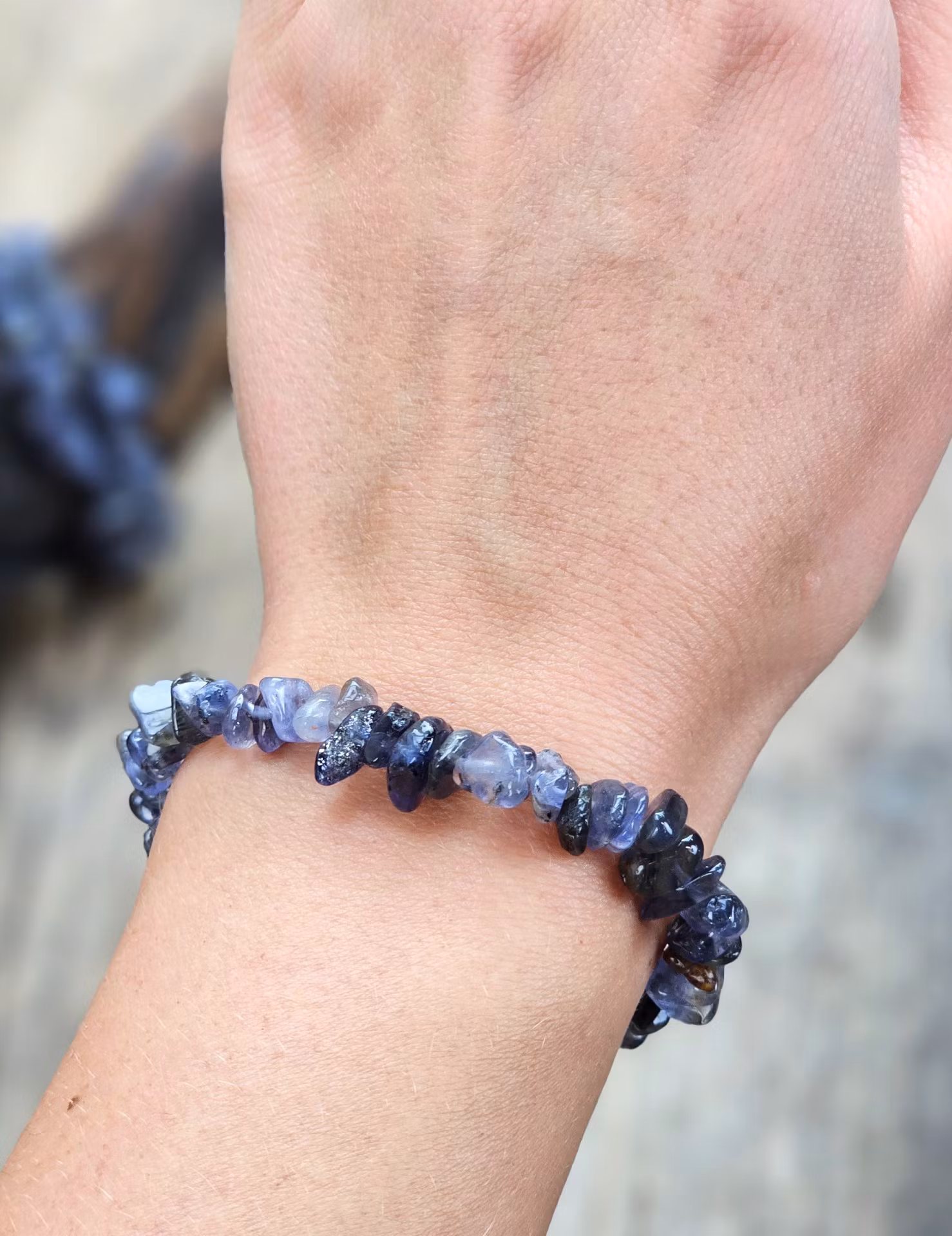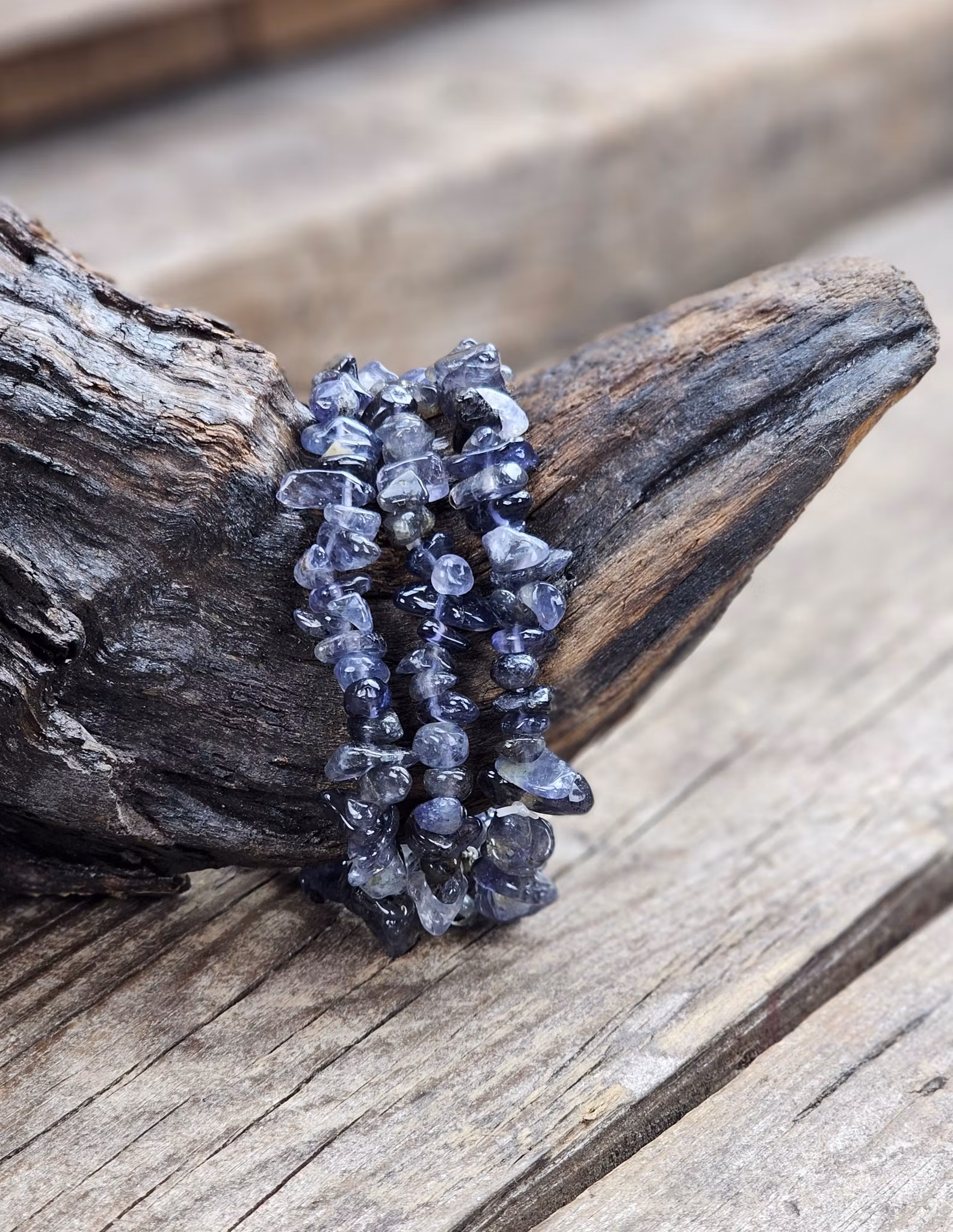 Underbart elastiskt armband i Iolit (Vattensafir) i mycket fin kvalité. Väldigt nätt & stilren modell som är mycket fin att ha bara en runt handleden eller flera tillsammans. Säljes styckvis. Du köper slumpvis liknande smycke enligt text & bild ovan. Tänk på att kristaller kommer från naturen & naturliga sprickor & ojämnhet kan förekomma. Färger kan skilja sig beroende på hur ljuset faller ner på kristallen samt även mellan olika bildskärmar m.m.