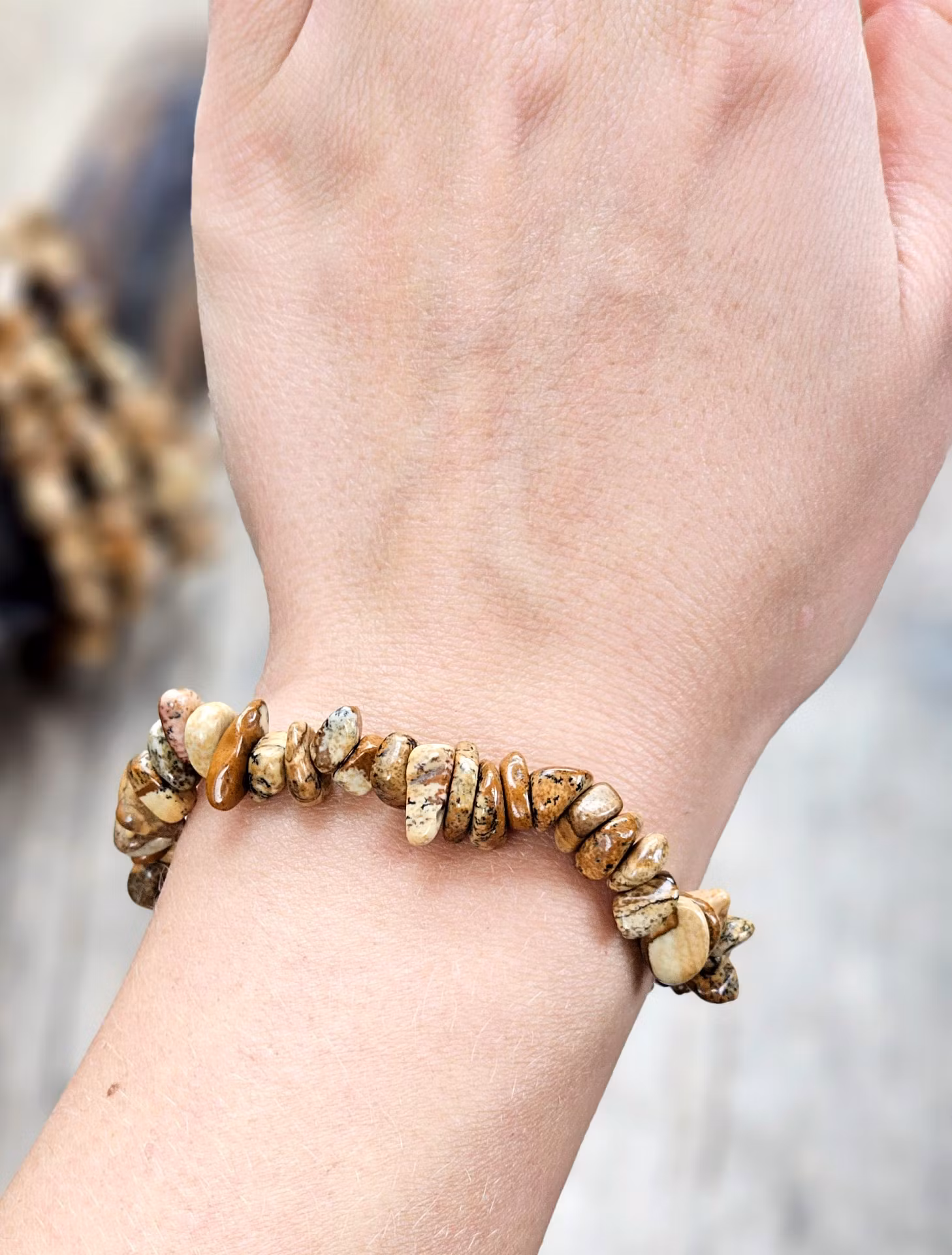 Mycket vackert elastiskt armband i Landskapsjaspis. Väldigt nätt & stilren modell som är mycket fin att ha bara en runt handleden eller flera tillsammans. Säljes styckvis. Du köper slumpvis liknande smycke enligt text & bild ovan. Tänk på att kristaller kommer från naturen & naturliga sprickor & ojämnhet kan förekomma. Färger kan skilja sig beroende på hur ljuset faller ner på kristallen samt även mellan olika bildskärmar m.m.