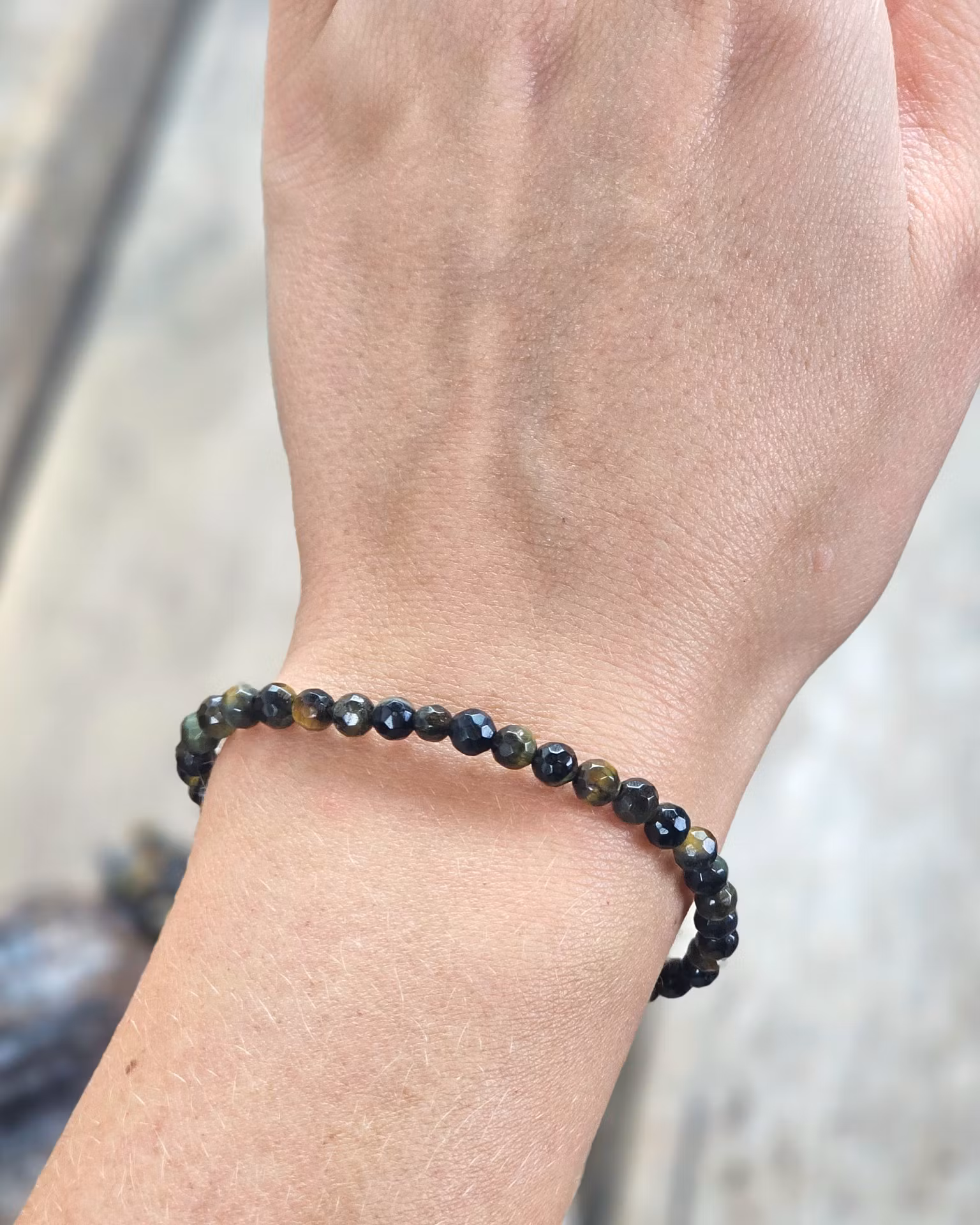 Falköga, armband 4mm facetterade pärlor