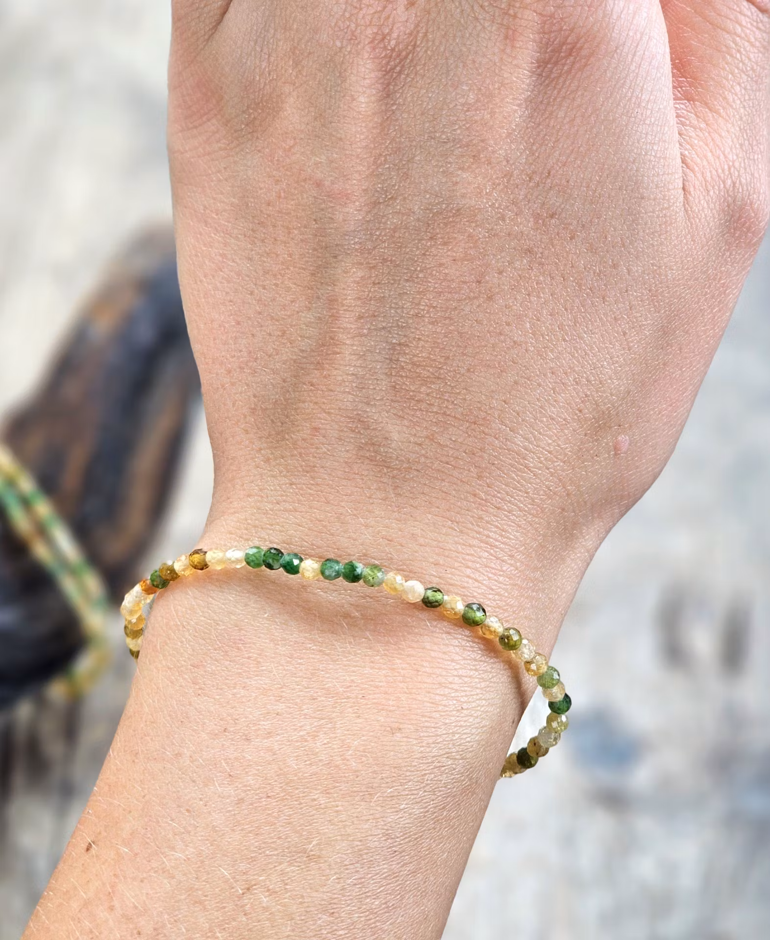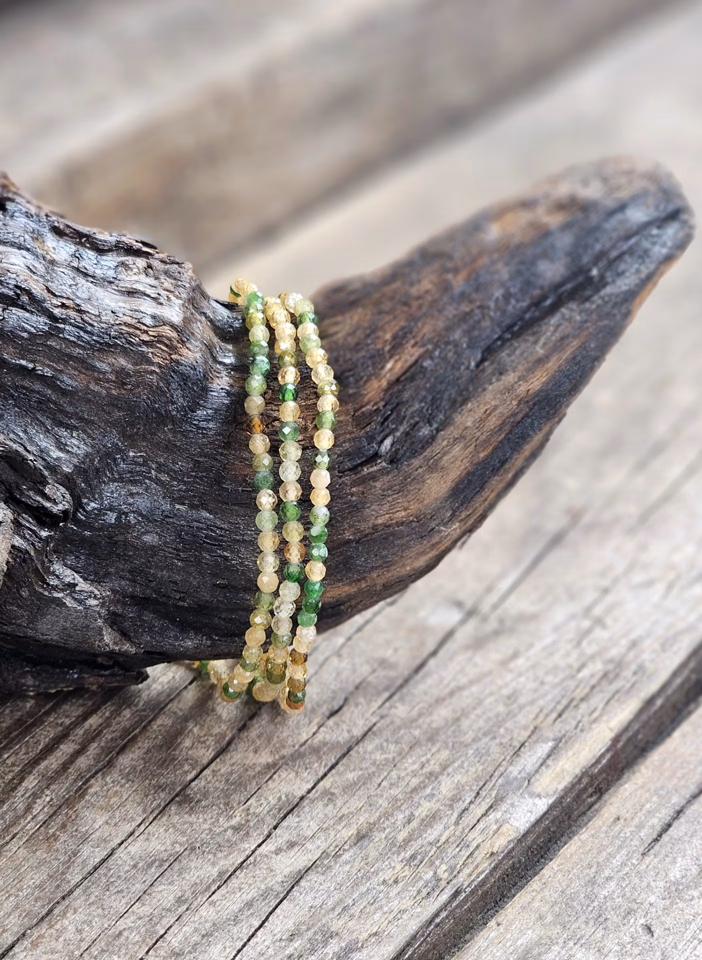 Grön & gul Turmalin, armband 3mm facetterade pärlor