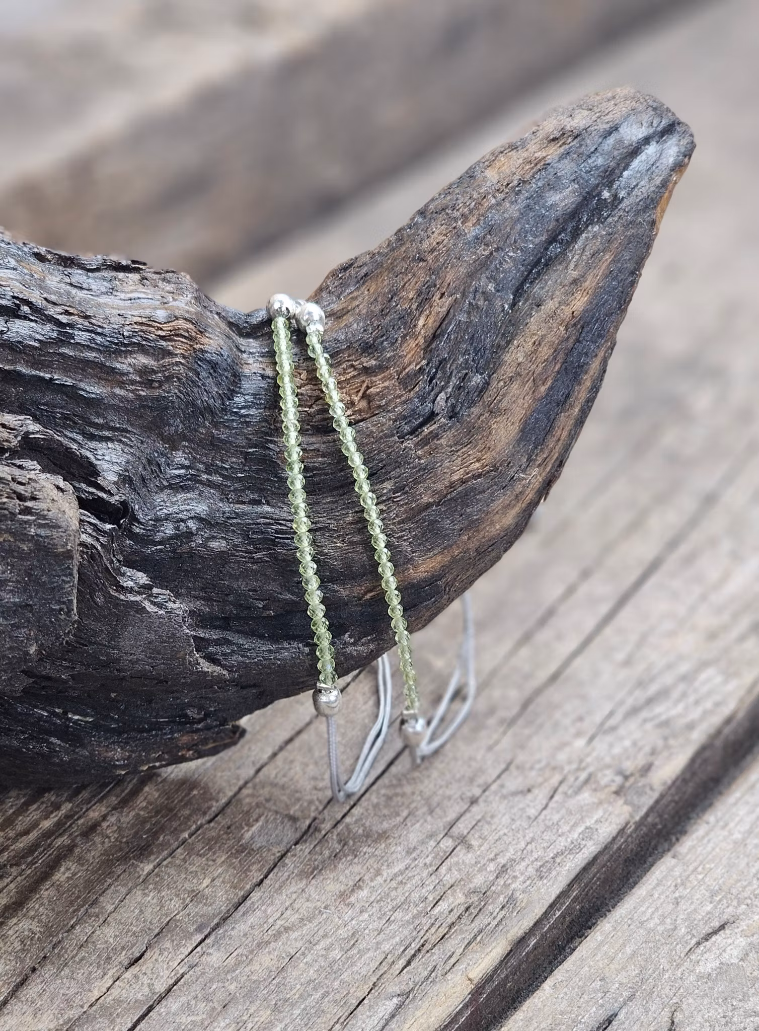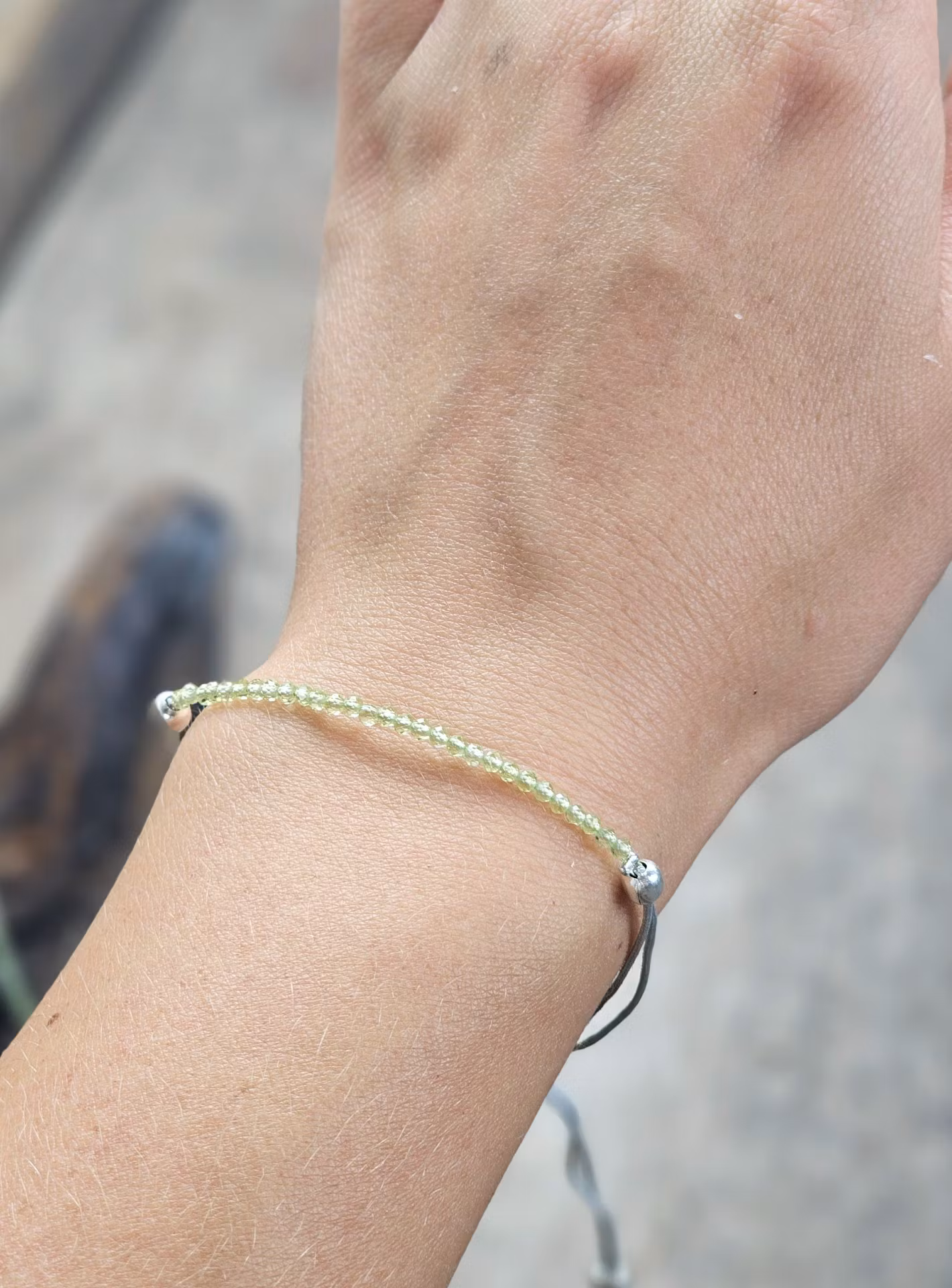 Peridot (Olivin), armband 3mm facetterade pärlor macramé