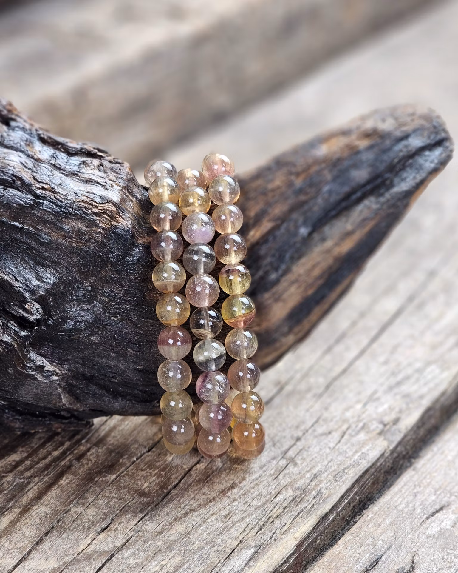 Mycket vackert elastiskt armband i Lila och Gul Fluorit. Helt underbara pärlor i riktigt fin kvalité! De varierar i utseende. Säljes styckvis. Du köper ett kristallarmband enligt text & bild ovan. Tänk på att kristaller kommer från naturen, små skillnader kan därför förekomma i produktens utseende på grund av dess naturmaterial. Färger kan skilja sig beroende på hur ljuset faller ner på kristallen samt även mellan olika bildskärmar m.m.