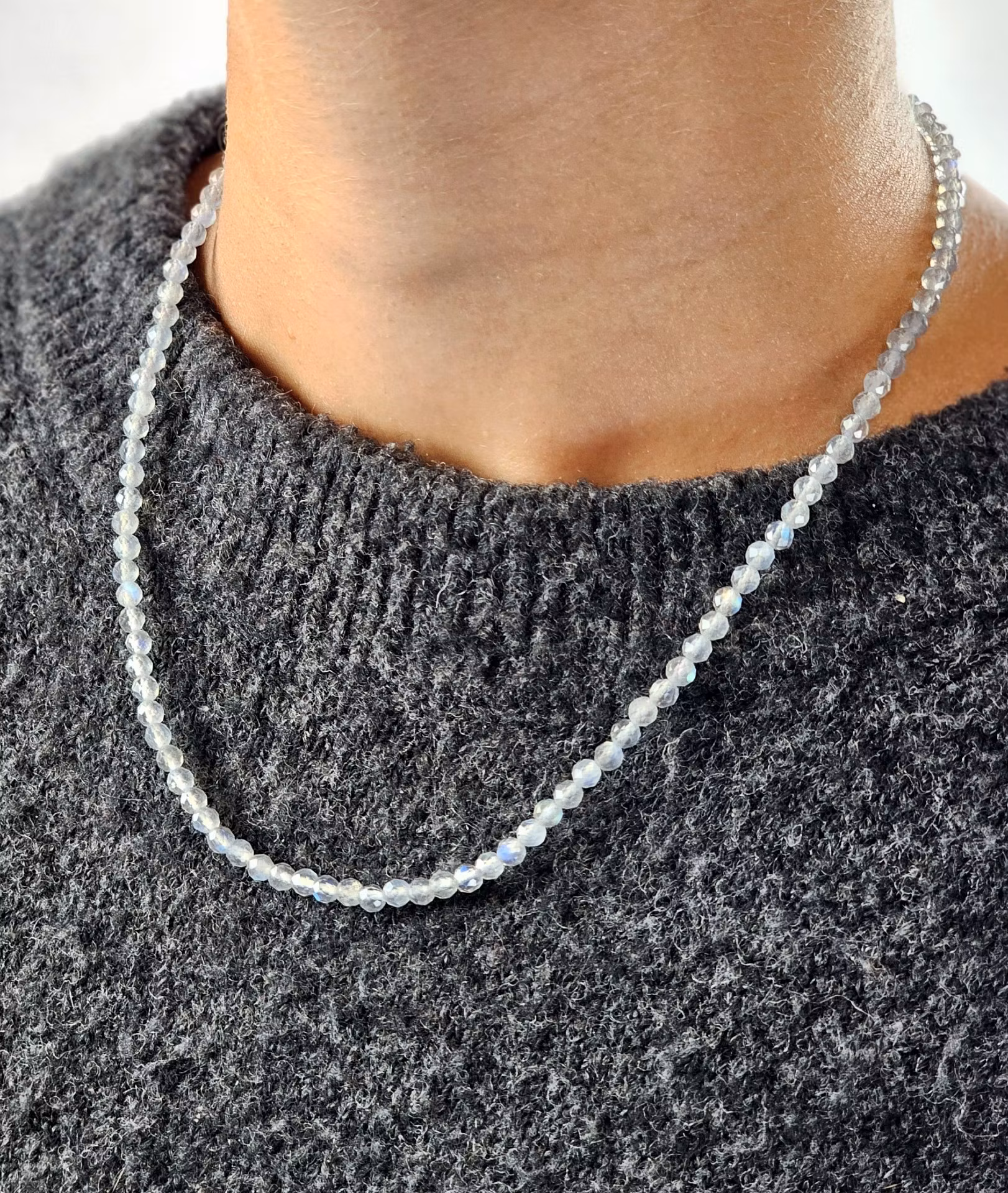 Labradorit, halsband 4mm facetterade pärlor 925s.